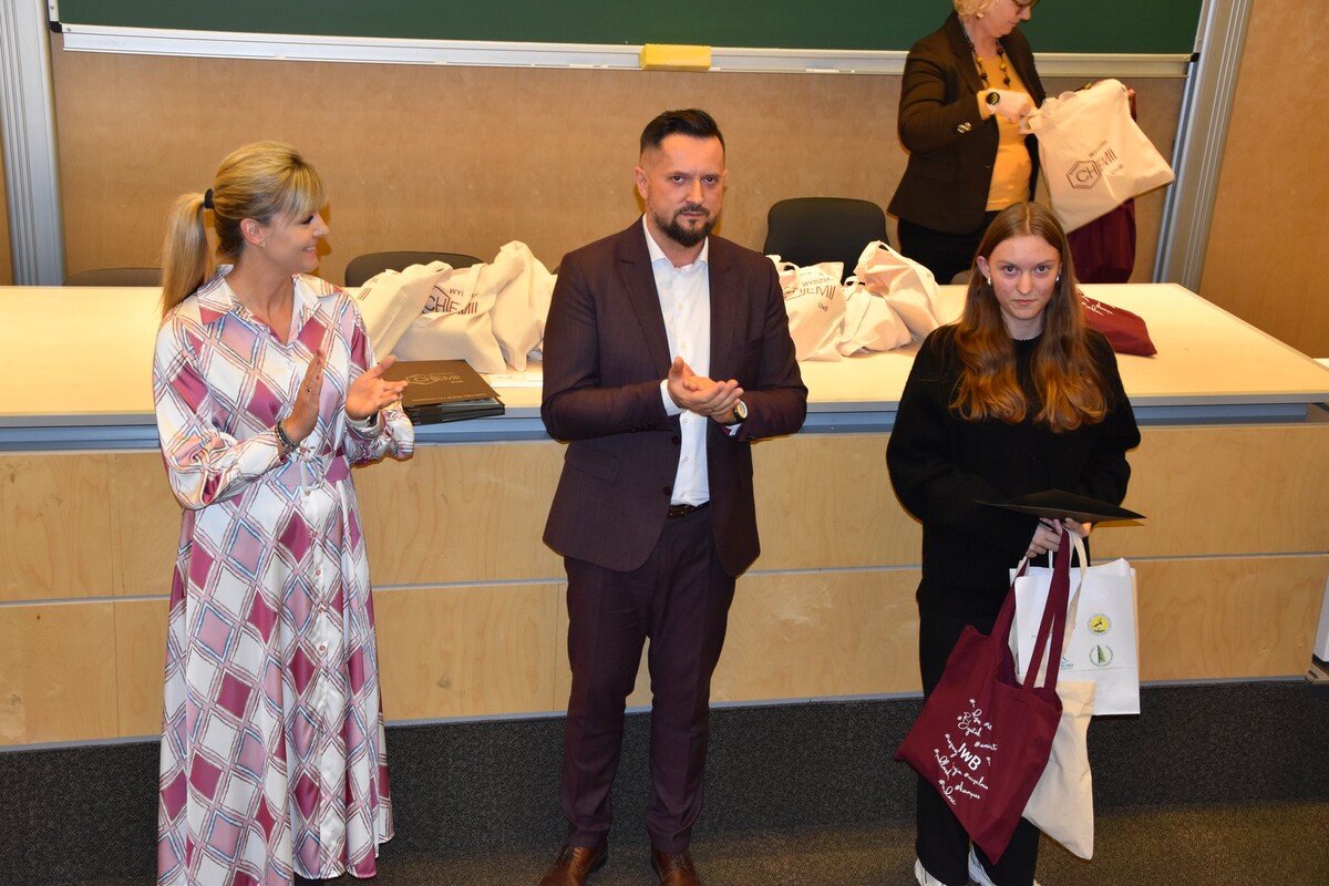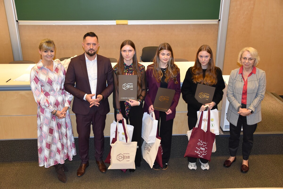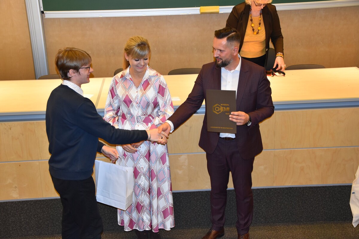 Nagrody wręczyli: Dziekan Wydziału Chemii prof. Joanna Karpińska, dyrektor Departamentu Ochrony Środowiska Urzędu Marszałkowskiego pan Janusz Bobik oraz dyrektor Wojewódzkiego Inspektoratu Ochrony Środowiska pani Anna Morzy.