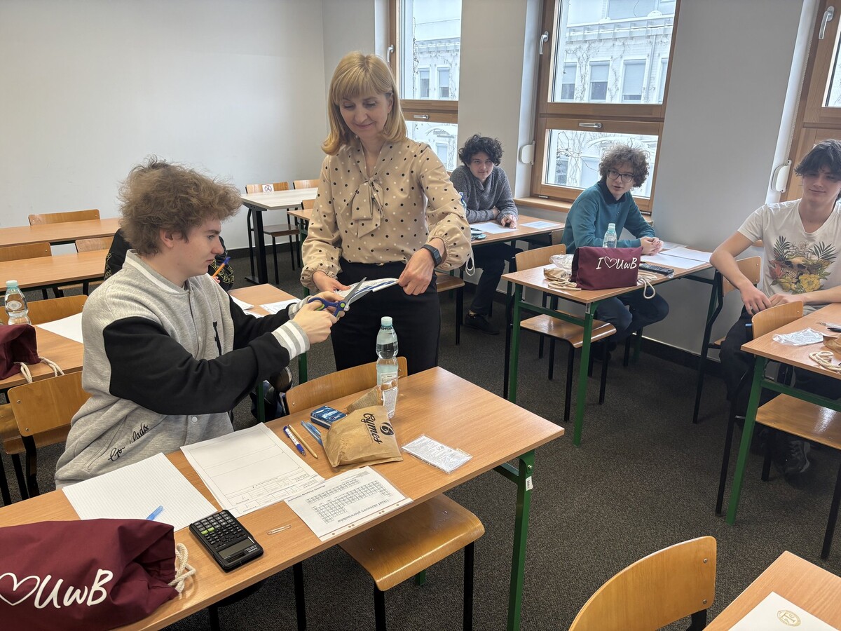W piątek uczniowie przez pięć godzin rozwiązywali zadania teoretyczne zatytułowane: Rozpuszczalność CO2 w wodzie i równowagi kwasowo-zasadowe, Kompleksowe związki kobaltu, Hydroliza bezwodnika octowego, Konformacyjnie zahamowany analog GABA oraz Monitoring zanieczyszczeń w syntezie leków.