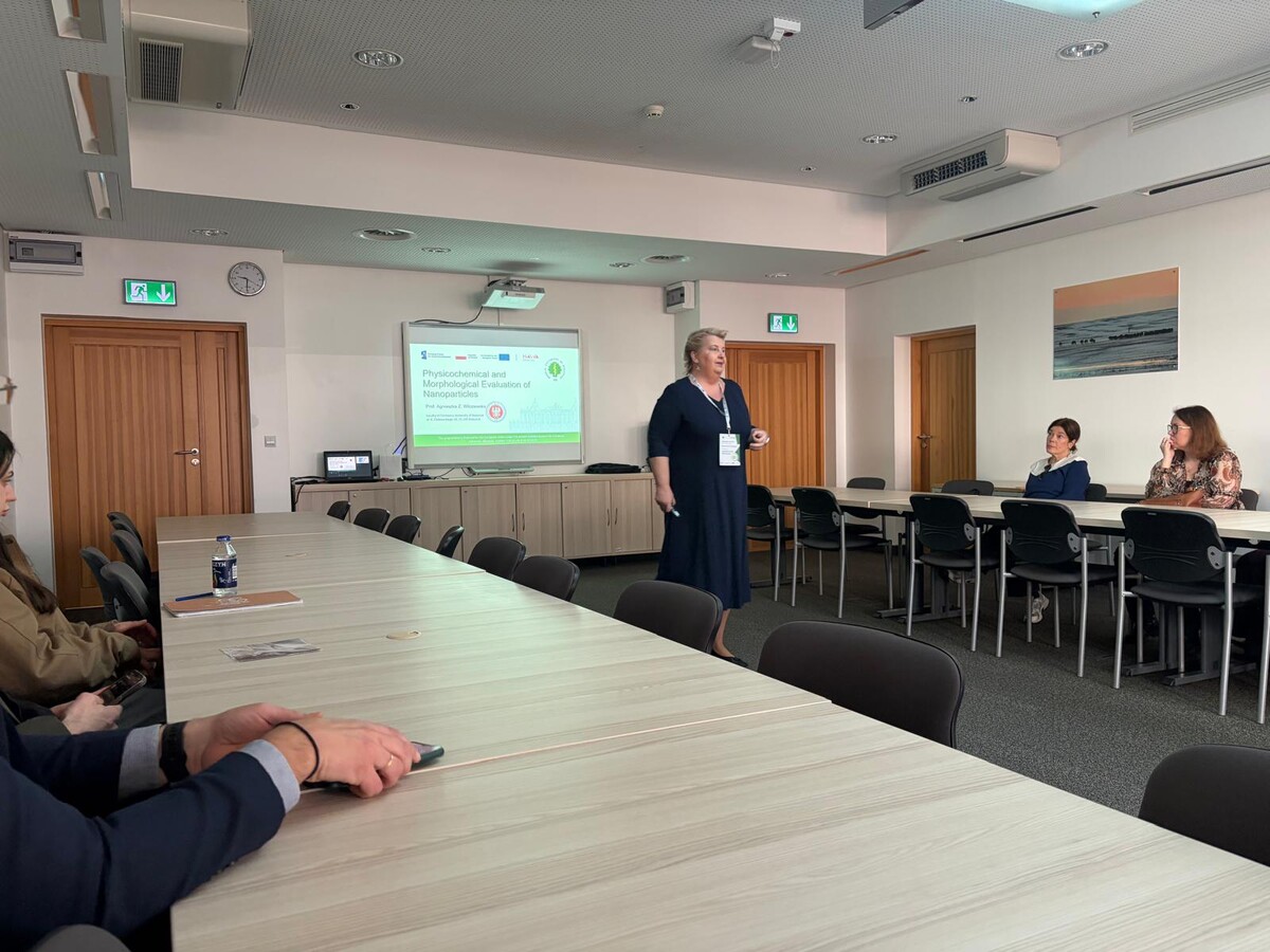 Jednym z kluczowych punktów programu był wykład prof. Agnieszki Z. Wilczewskiej pt. „Physicochemical and Morphological Evaluation of Nanoparticles”, który poświęcony jest metodom oceny właściwości fizykochemicznych i morfologicznych nanocząstek.
