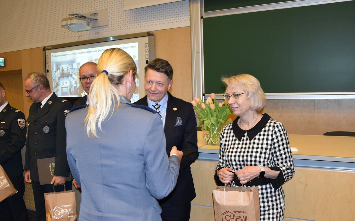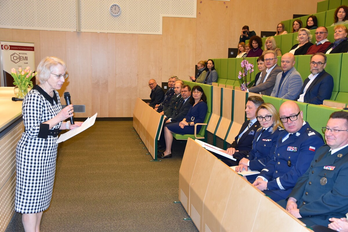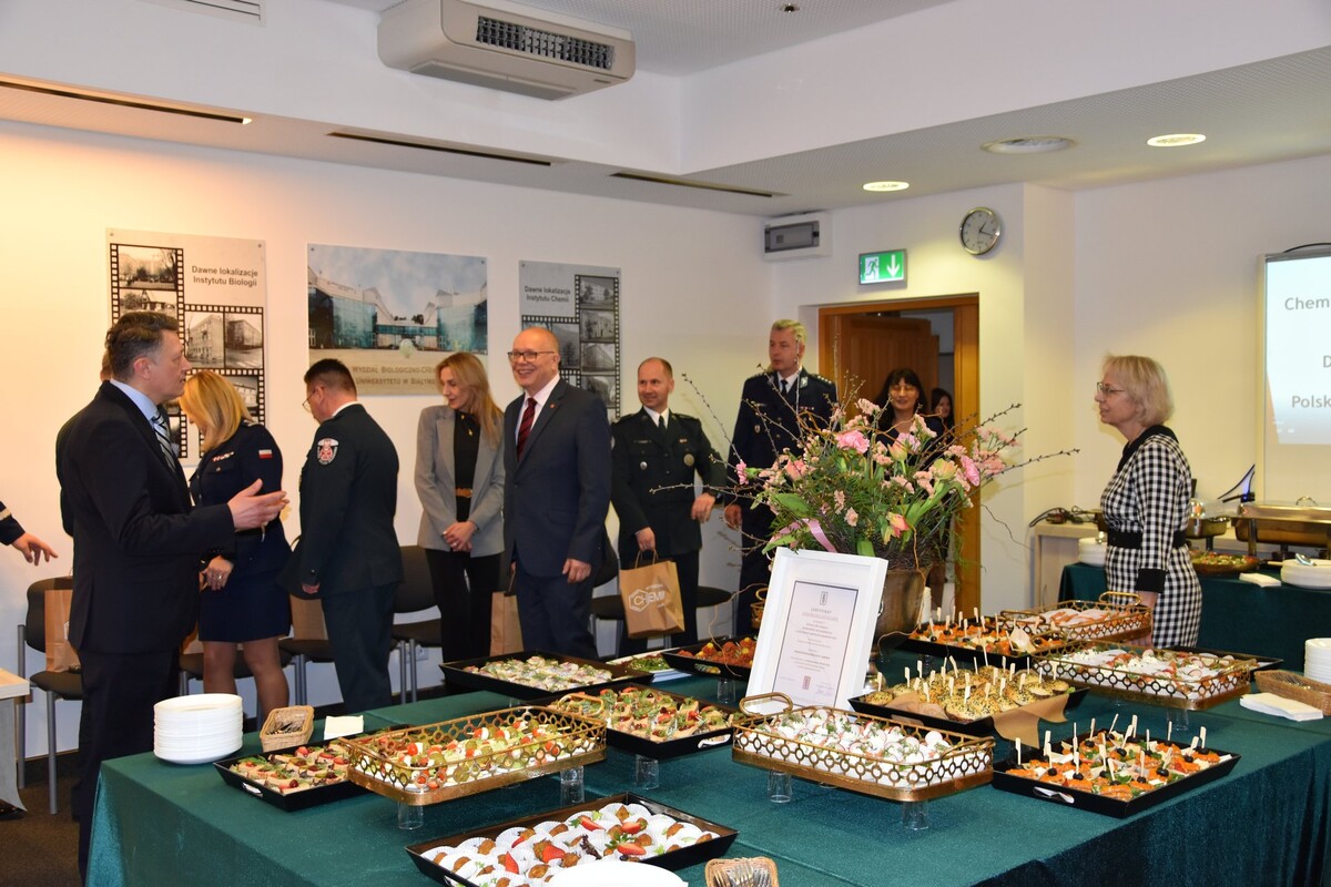 Dzień później (26 marca) odbyło się uroczyste spotkanie w siedzibie Wydziału Chemii. Wzięli w nim udział władze uczelni, pracownicy Wydziału i zaproszeni goście, a wśród nich: prof. Mariusz Popławski, prorektor ds. studentów i doktorantów prof. UwB Anna Gardocka-Dubatówka, prorektor ds. rozwoju prof. UwB Tomasz Bajkowski, Komendant Wojewódzki Policji w Białymstoku - nadinsp. Kamil Borkowski, Dyrektor Centralnego Laboratorium Kryminalistycznego Policji – insp. Iwona Marciniak-Krawczyk, Dyrektor Izby Administracji Skarbowej w Białymstoku - insp. Piotr Szczepaniak, nadkom. Maciej Kalenik - Naczelnik Laboratorium Kryminalistycznego KW Policji w Białymstoku, podinsp. Artur Kundzicz – kierownik Laboratorium Celnego Podlaskiego Urzędu Celno-Skarbowego oraz kolegium dziekańskie zaprzyjaźnionego Wydziału Biologii.