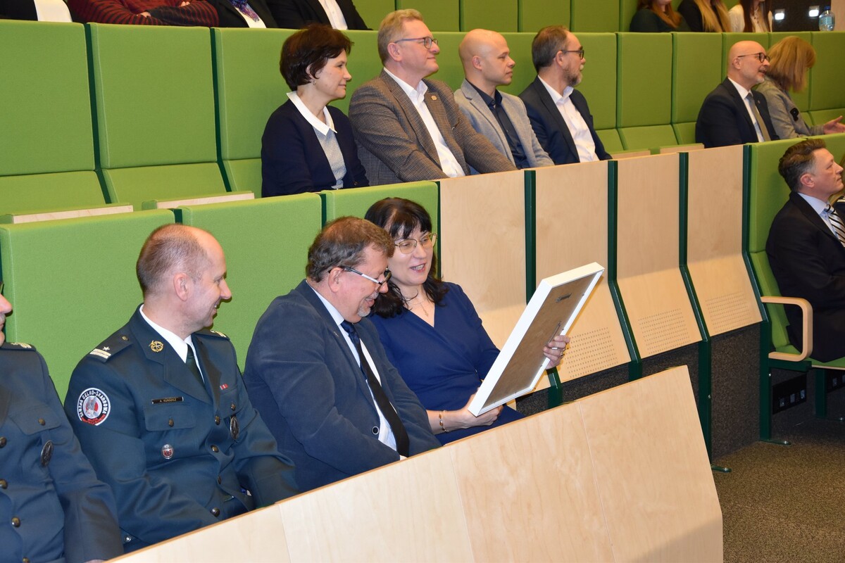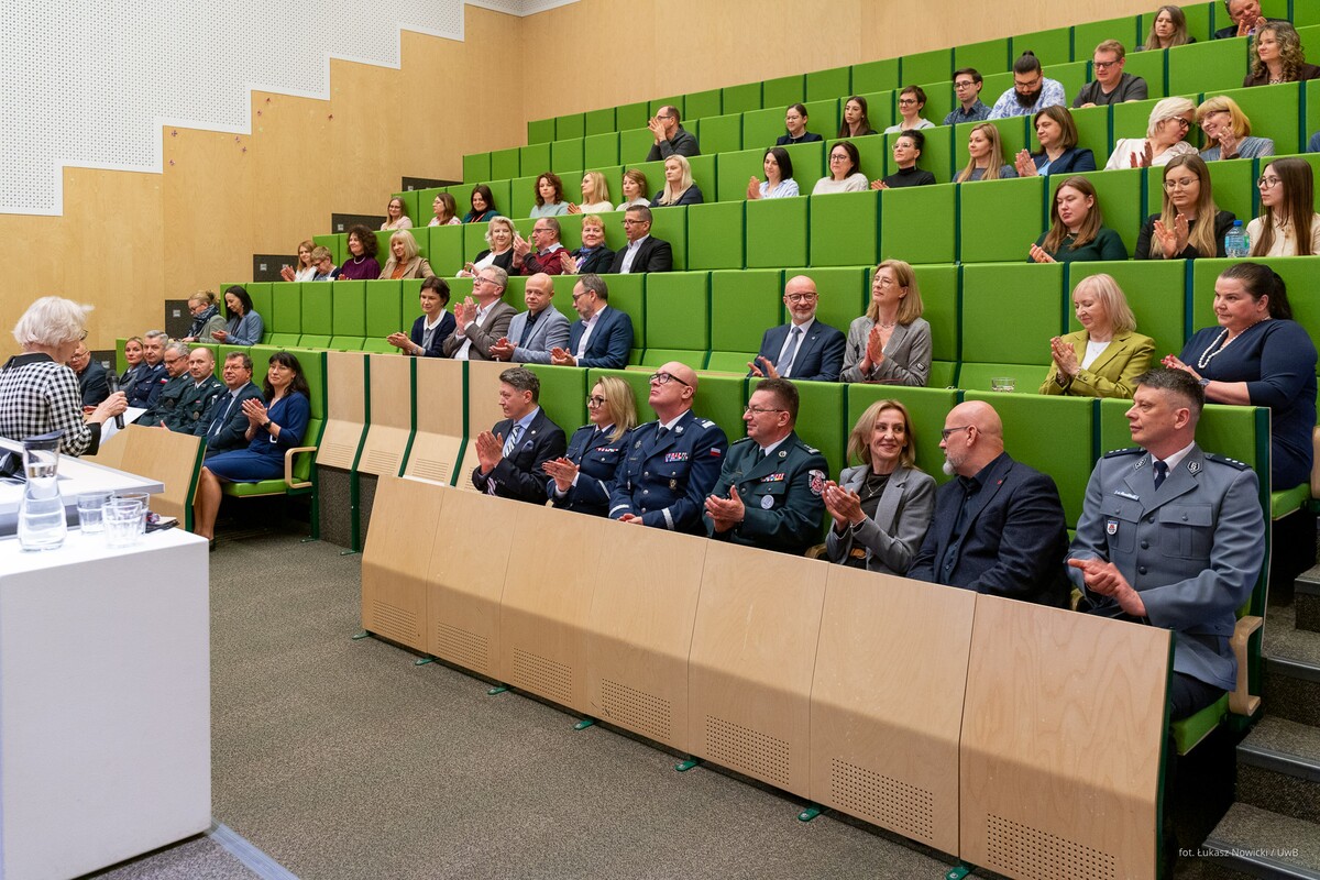 - Rozpoczynamy celebrowanie ogromnego sukcesu nie tylko z perspektywy Wydziału Chemii, ale też całego Uniwersytetu. Otrzymaliśmy certyfikat, na który zasłużyło tylko 16 kierunków w skali kraju. To pokazuje, w jak elitarnym gronie znaleźliśmy się. Dziękuję i gratuluję kolegium dziekańskiemu Wydziału Chemii oraz pracownikom i wszystkim osobom zaangażowanym w utworzenie i prowadzenie tego kierunku. Ten certyfikat potwierdza, że wspaniale potrafimy współpracować z otoczeniem społeczno-gospodarczym. Dobra nauka jest wtedy, jeżeli jest realizowana we współpracy ze znakomitymi specjalistami – mówił podczas uroczystości rektor UwB prof. Mariusz Popławski, dziękując przedstawicielom służb mundurowych i instytucji państwowych za zaangażowanie przy tworzeniu kierunku chemia kryminalistyczna i sądowa.