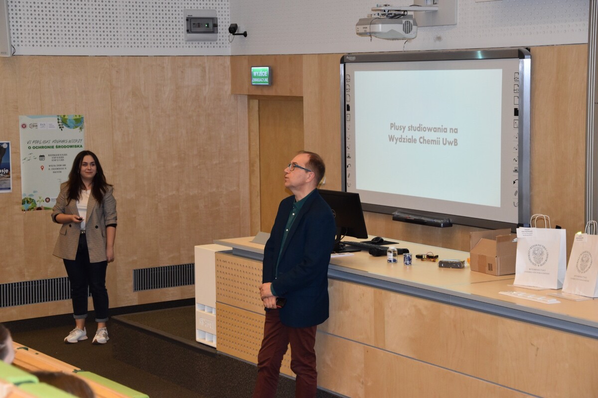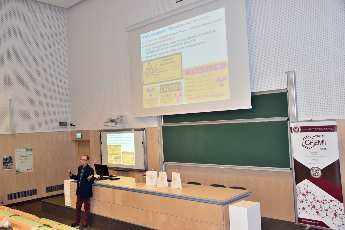 W trakcie wydarzenia uczestnicy mieli również okazję wysłuchać interesującej prelekcji prof. dra hab. Ryszarda Łaźnego poświęconej promieniotwórczości, a także zapoznać się z działalnością Koła Naukowego Chemików UwB „Pozyton”.