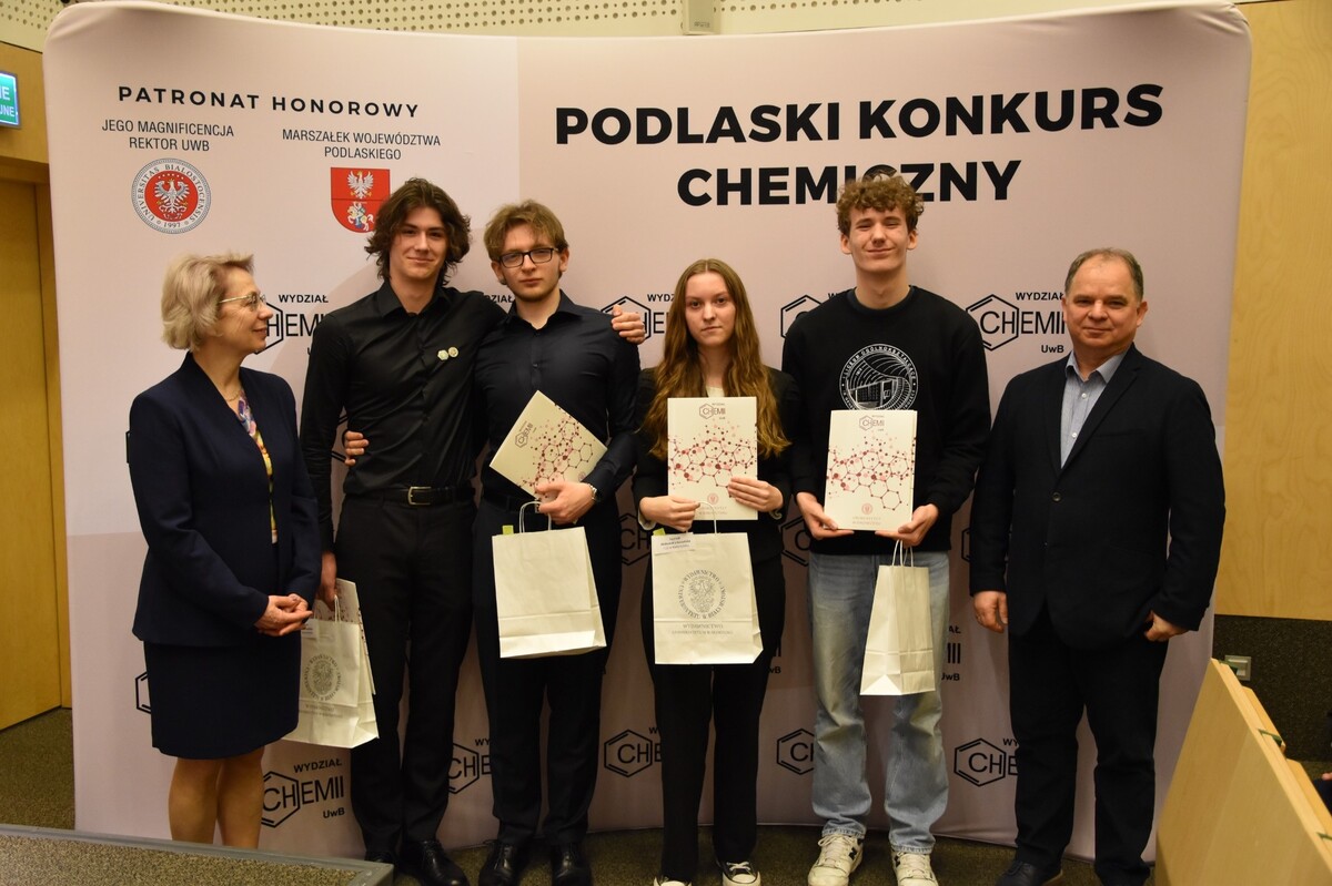 Uroczystość rozpoczęła się wręczeniem nagród laureatom konkursu oraz finalistom Olimpiady Chemicznej. Szczególne wyróżnienie otrzymała również dr hab. Izabela Dobrzyńska, prof. UwB, za zaangażowanie w przygotowanie uczniów do Olimpiady.