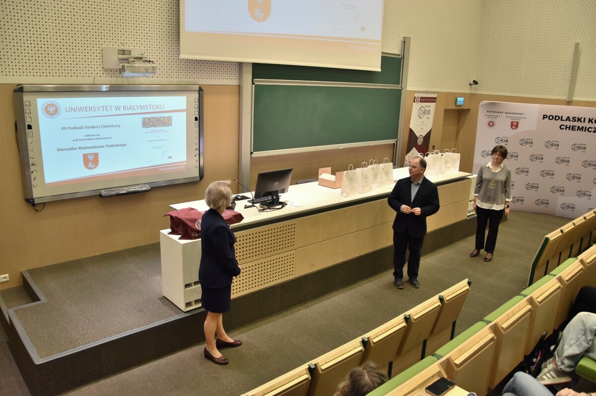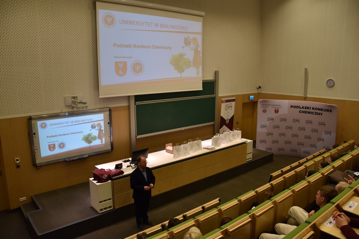 Przypominamy, że Fundatorem nagród w Podlaskim Konkursie Chemicznym (edycja 2025/2026) jest Marszałek Województwa Podlaskiego. A Patronatem Honorowym wydarzenie objęli: Marszałek Województwa Podlaskiego oraz Jego Magnificencja Rektor Uniwersytetu w Białymstoku.