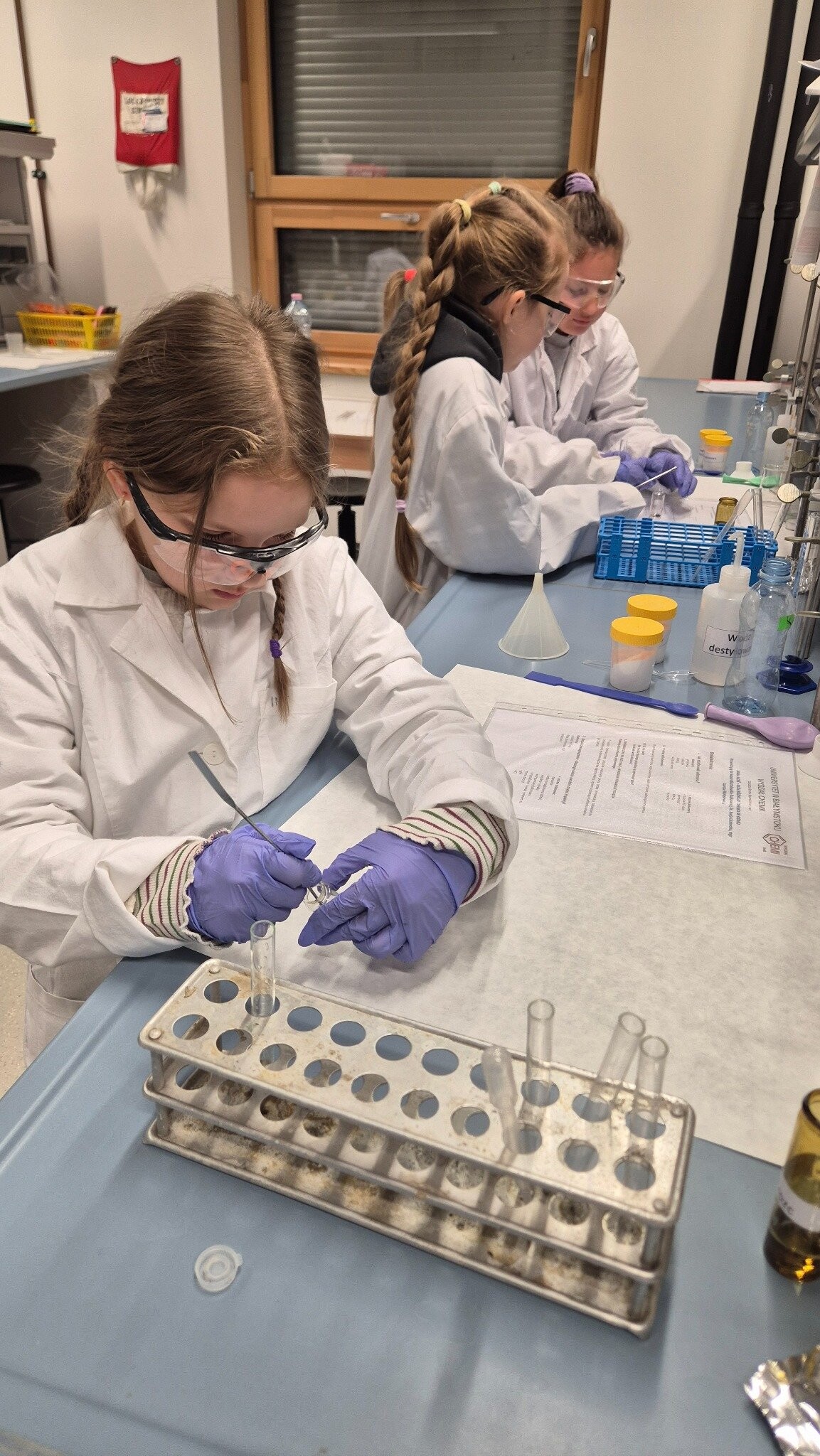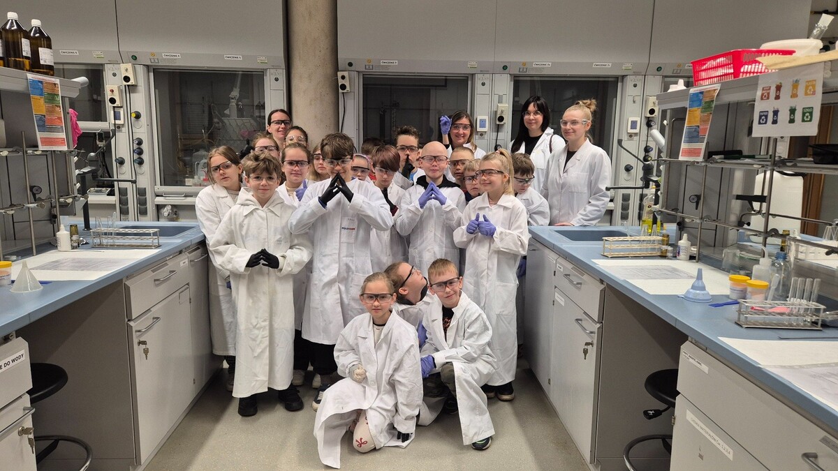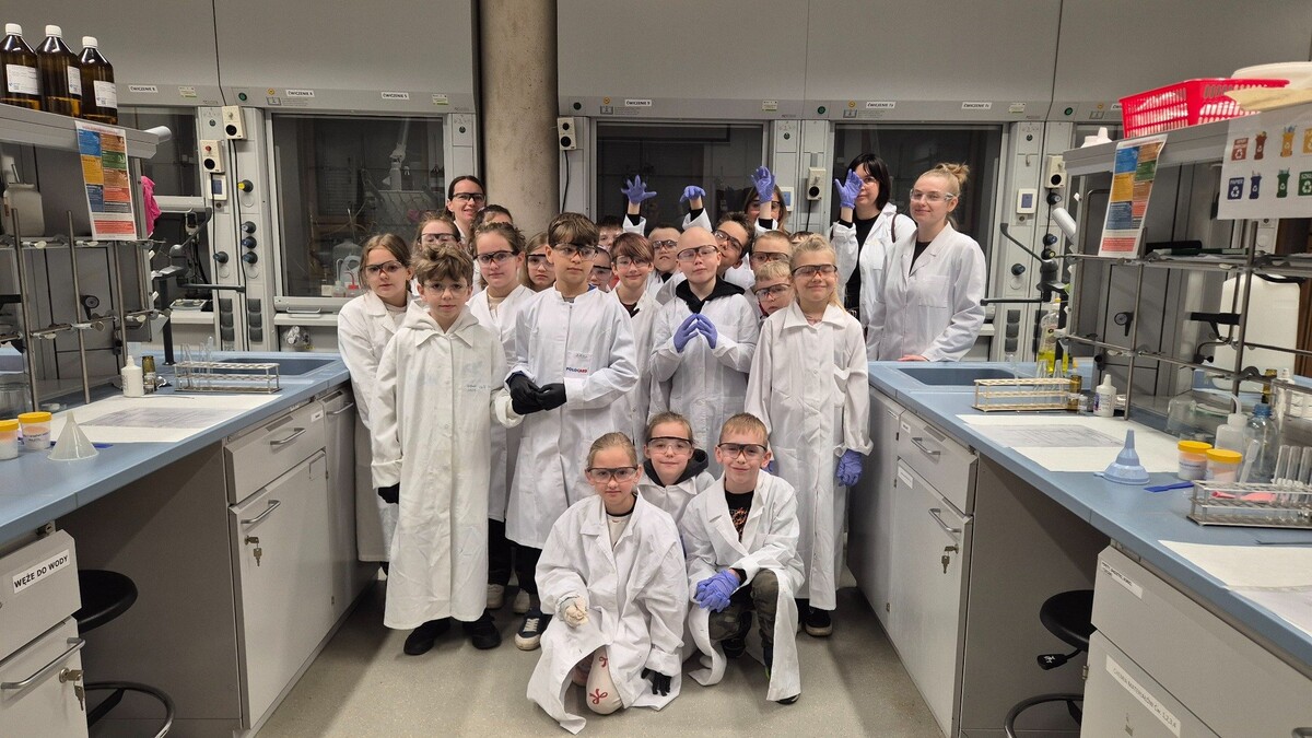 Podczas zajęć dzieci miały wyjątkową okazję samodzielnie przeprowadzić ciekawe doświadczenia chemiczne pod okiem dr Iwony Misztalewskiej-Turkowicz oraz lic. Łucji Liszewskiej. Spotkanie było nie tylko fascynującą przygodą z nauką, ale również cenną lekcją bezpieczeństwa.