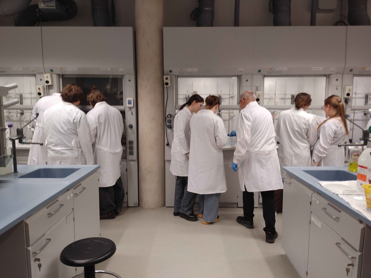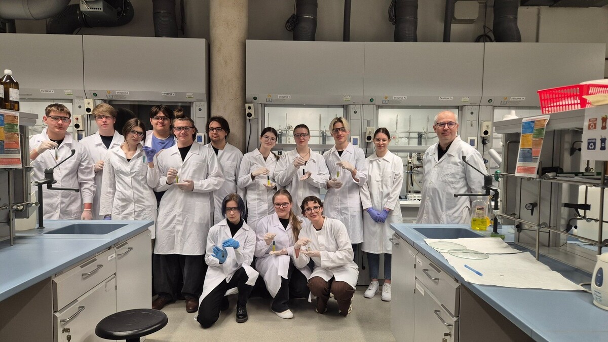 30 marca 2026 roku maturzyści mieli okazję pracować w prawdziwych laboratoriach, gdzie samodzielnie przeprowadzali reakcje charakterystyczne pod kierunkiem dr. Michała Sienkiewicza. Dzięki temu mogli na własne oczy obserwować zmiany zachodzące podczas reakcji chemicznych - od efektownych zmian barw po powstawanie osadów. Natomiast pod kierunkiem mgr Joanny Wysockiej uczestniczyli w wyjątkowych zajęciach, podczas których własnoręcznie wytwarzali papier.