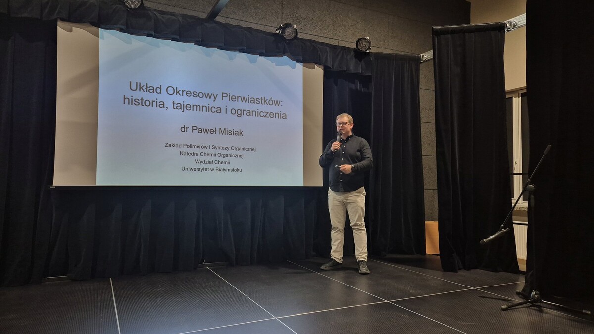 Z okazji 158. rocznicy urodzin Marii Skłodowskiej-Curie dr Paweł Misiak z Wydziału Chemii Uniwersytetu w Białymstoku spotkał się z uczniami XI Liceum Ogólnokształcącego im. rotmistrza Witolda Pileckiego w Białymstoku. Wygłosił wykład pt. „Układ Okresowy Pierwiastków: historia, tajemnica i ograniczenia”, opowiadając o fascynującej drodze odkryć chemicznych i niezwykłych osobowościach, które zmieniły nasze rozumienie materii.