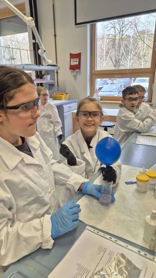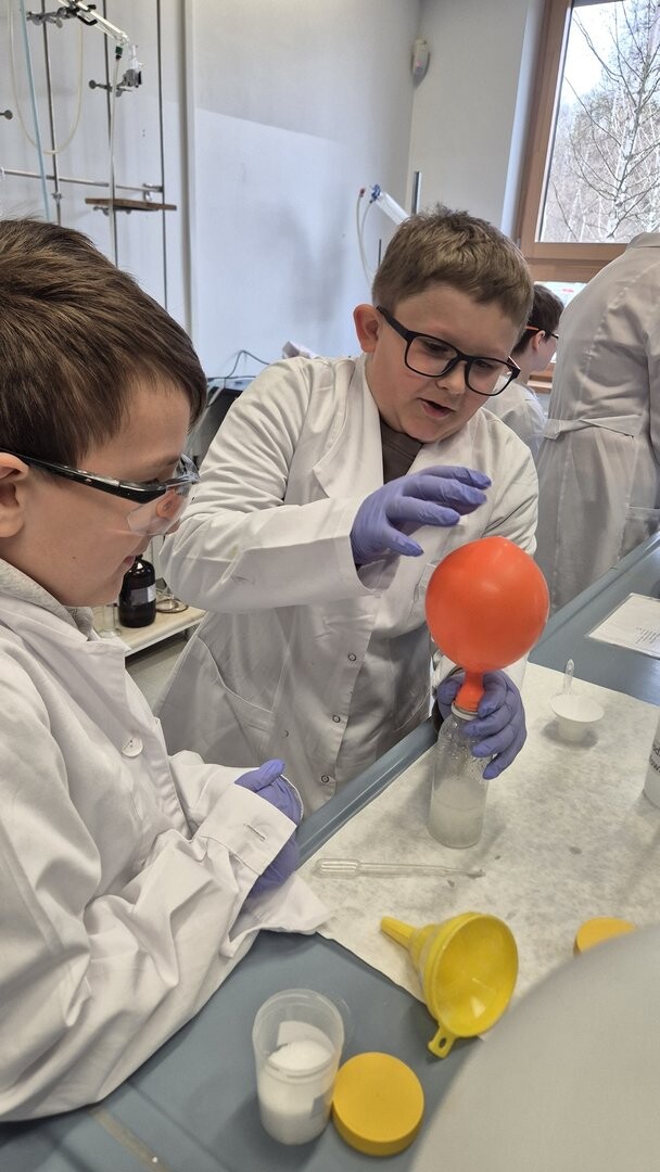 Uczniowie poznawali właściwości wybranych gazów, takich jak para wodna, wodór oraz tlenek węgla(IV), a także samodzielnie uczestniczyli w efektownych doświadczeniach. W programie znalazły się m.in. pompowanie balonika, gaszenie świeczek oraz mini-generatory pary. Zajęcia wzbudziły duże zainteresowanie i były dla dzieci nie tylko świetną zabawą, ale przede wszystkim cenną lekcją nauki w praktyce.