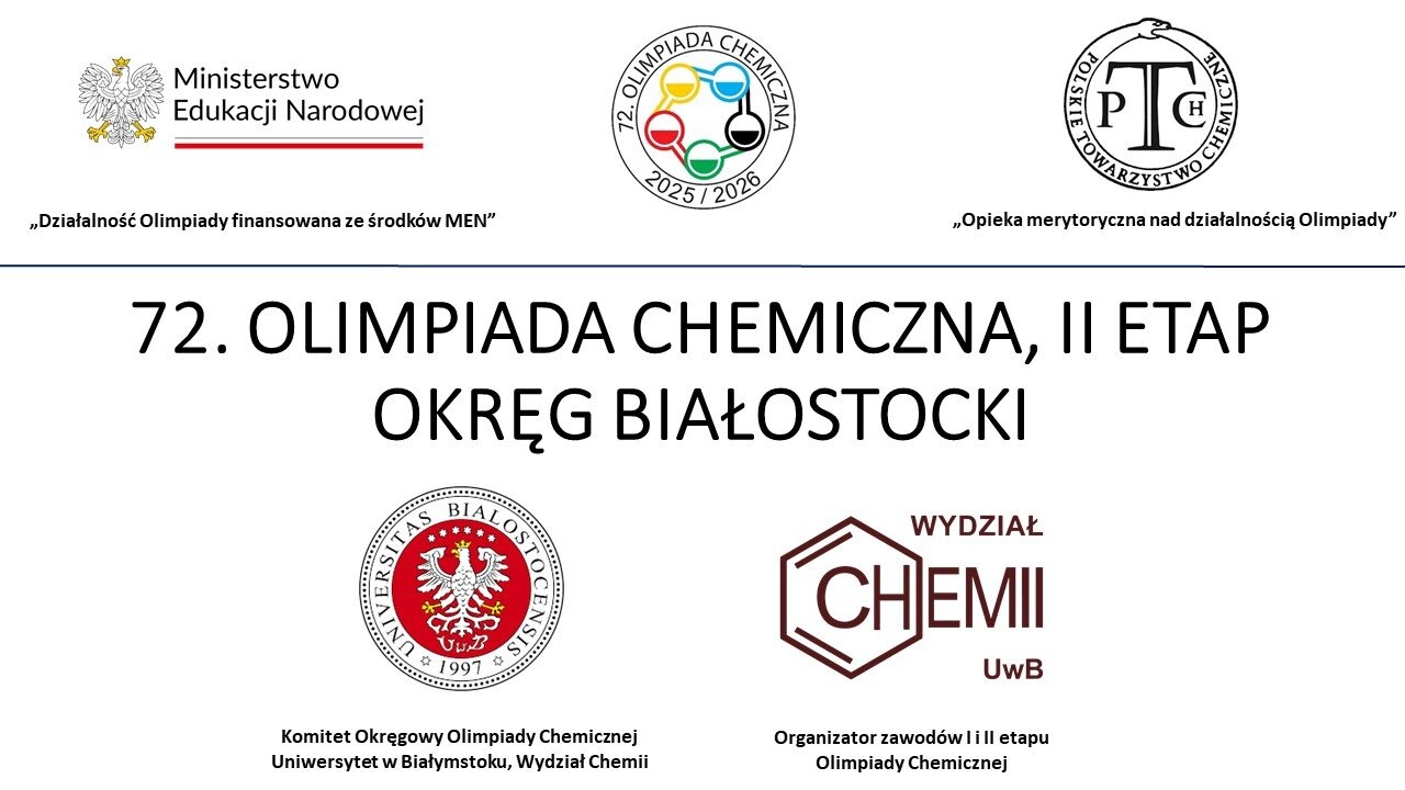 Głównym Organizatorem Olimpiady jest Polskie Towarzystwo Chemiczne. Na Wydziale Chemii Uniwersytetu w Białymstoku funkcjonuje Komitet Okręgowy Olimpiady Chemicznej, który współorganizuje zawody I oraz II etapu. Więcej informacji na temat Olimpiady Chemicznej znajduje się na stronie Komitetu Głównego (https://www.olchem.edu.pl/)