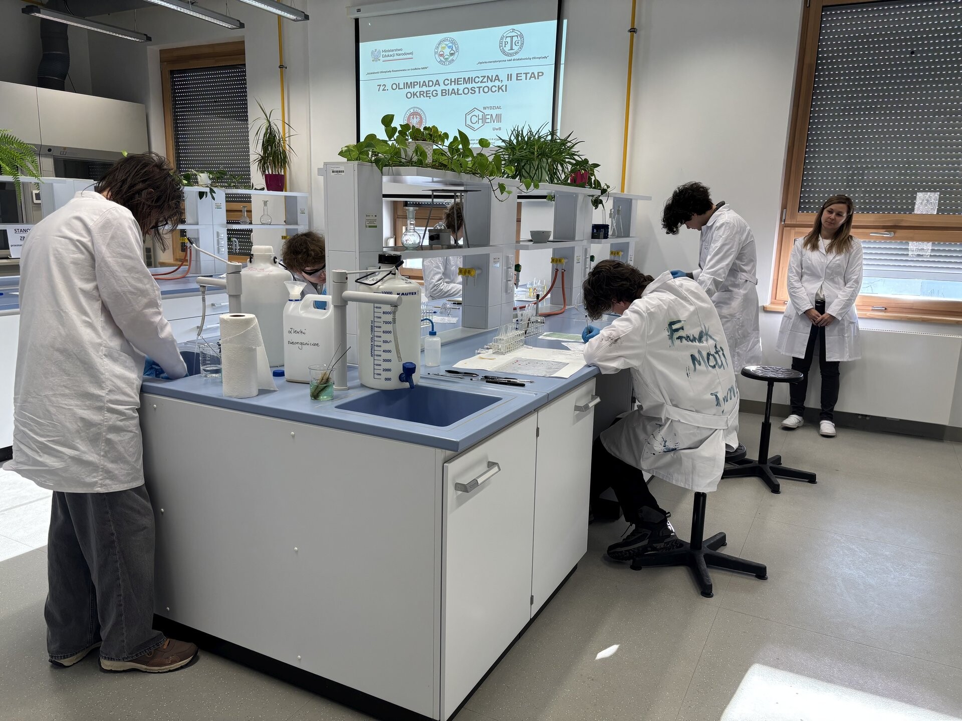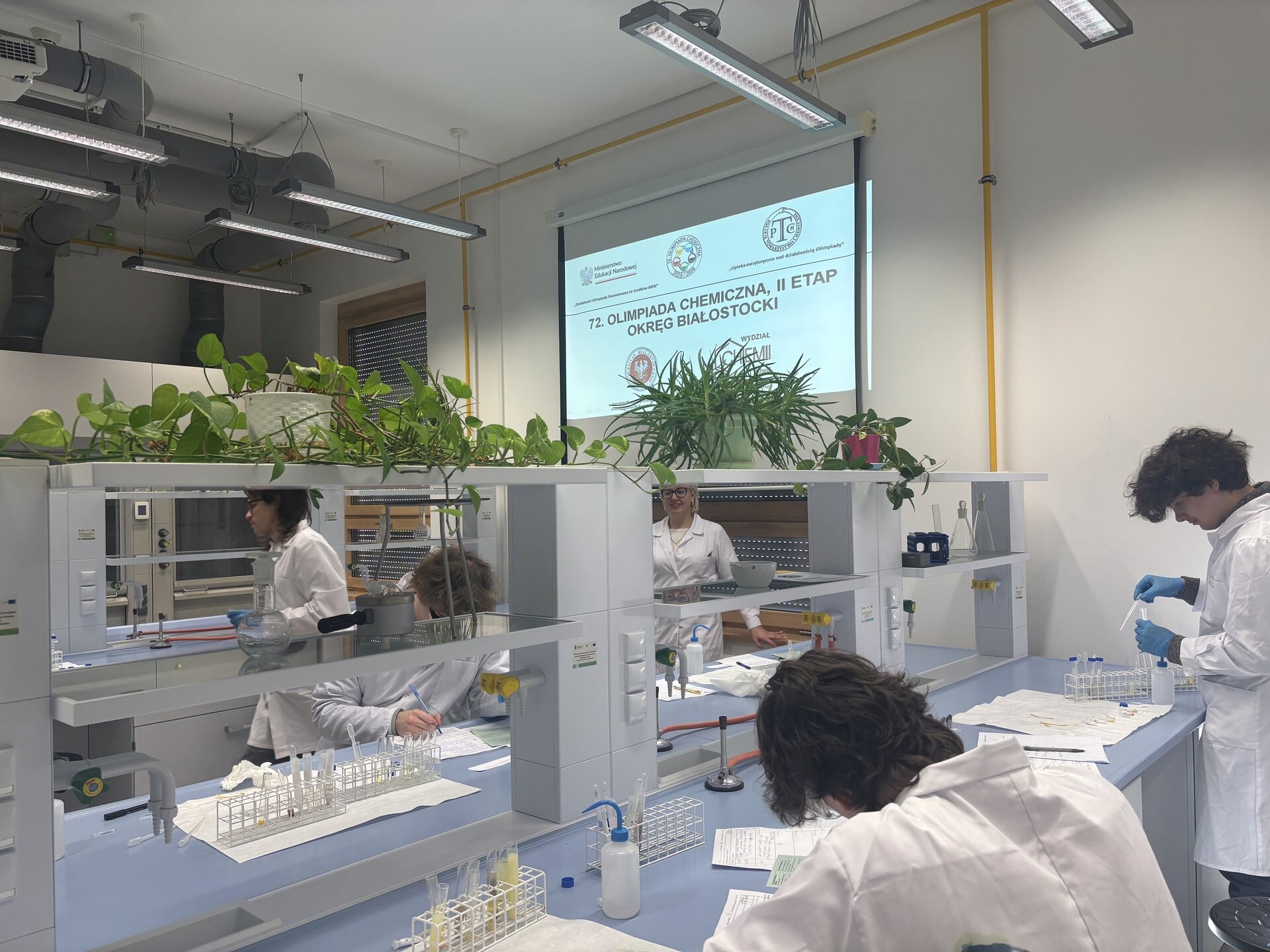 W sobotę zawodnicy przez cztery godziny rozwiązywali zadanie laboratoryjne pt. Analiza materiałów trudno rozpuszczalnych (pigmenty naturalne i syntetyczne). Wyniki II etapu Olimpiady Chemicznej zostaną opublikowane 11.02.2026 r. Uczestnikom Olimpiady z okręgu białostockiego życzymy kwalifikacji do III etapu.