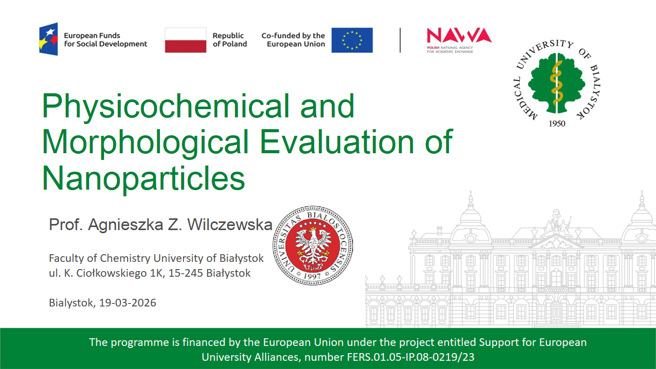 Jednym z kluczowych punktów programu był wykład prof. Agnieszki Z. Wilczewskiej pt. „Physicochemical and Morphological Evaluation of Nanoparticles”, który poświęcony jest metodom oceny właściwości fizykochemicznych i morfologicznych nanocząstek.