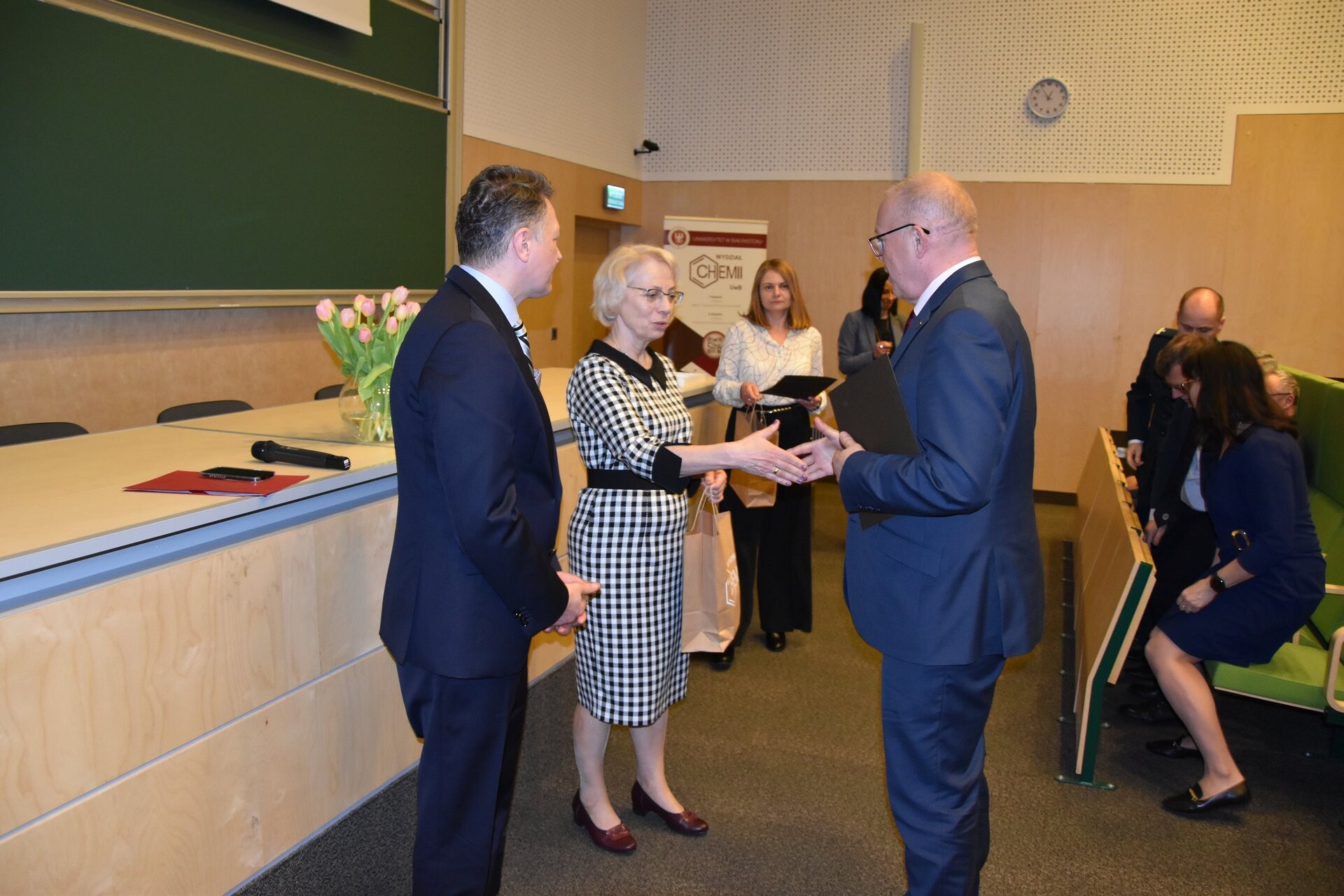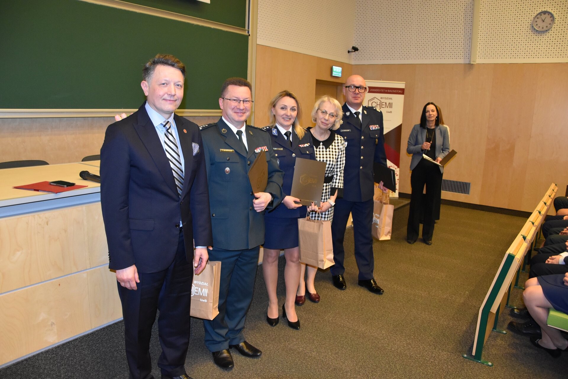 Dzień później (26 marca) odbyło się uroczyste spotkanie w siedzibie Wydziału Chemii. Wzięli w nim udział władze uczelni, pracownicy Wydziału i zaproszeni goście, a wśród nich: prof. Mariusz Popławski, prorektor ds. studentów i doktorantów prof. UwB Anna Gardocka-Dubatówka, prorektor ds. rozwoju prof. UwB Tomasz Bajkowski, Komendant Wojewódzki Policji w Białymstoku - nadinsp. Kamil Borkowski, Dyrektor Centralnego Laboratorium Kryminalistycznego Policji – insp. Iwona Marciniak-Krawczyk, Dyrektor Izby Administracji Skarbowej w Białymstoku - insp. Piotr Szczepaniak, nadkom. Maciej Kalenik - Naczelnik Laboratorium Kryminalistycznego KW Policji w Białymstoku, podinsp. Artur Kundzicz – kierownik Laboratorium Celnego Podlaskiego Urzędu Celno-Skarbowego oraz kolegium dziekańskie zaprzyjaźnionego Wydziału Biologii.