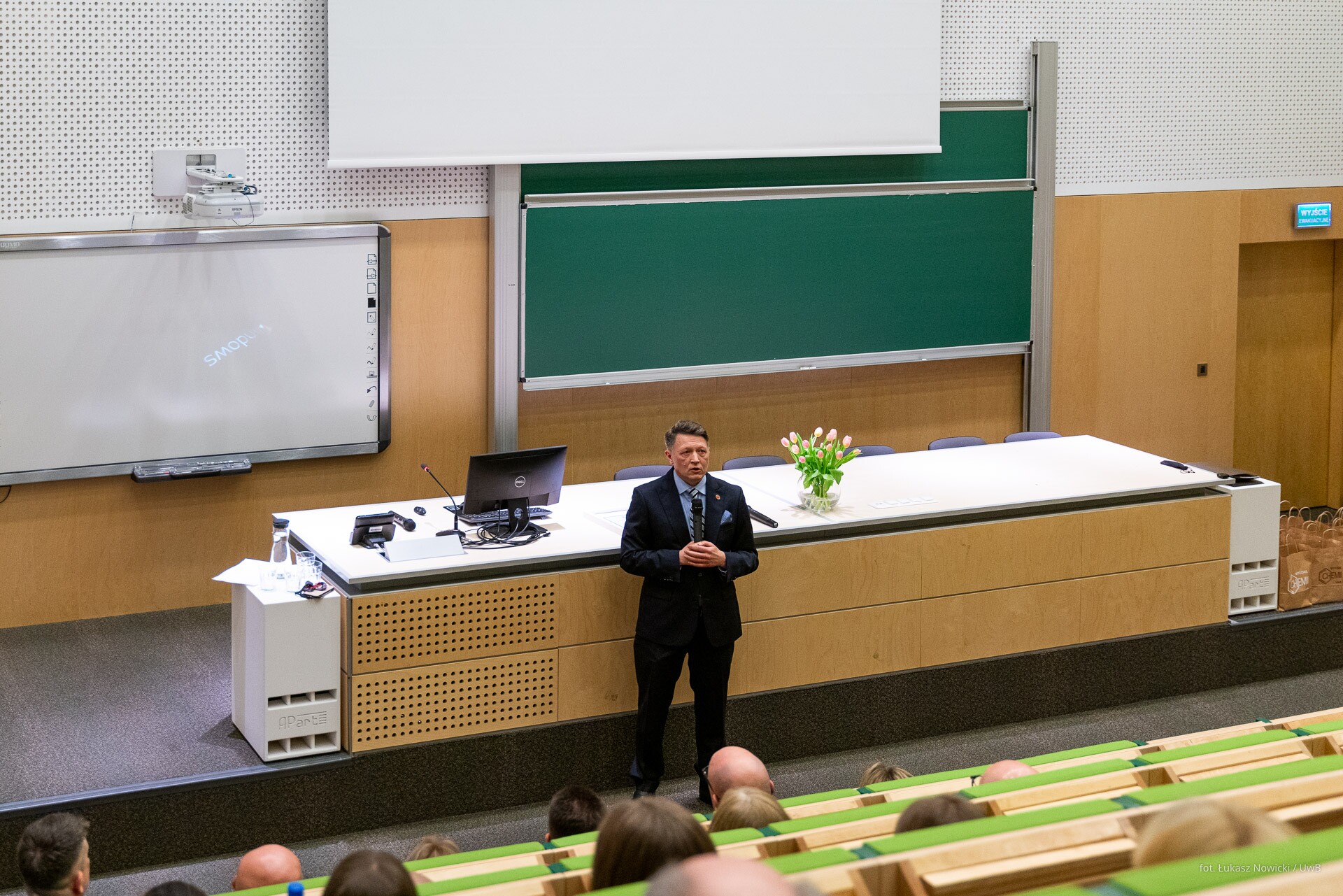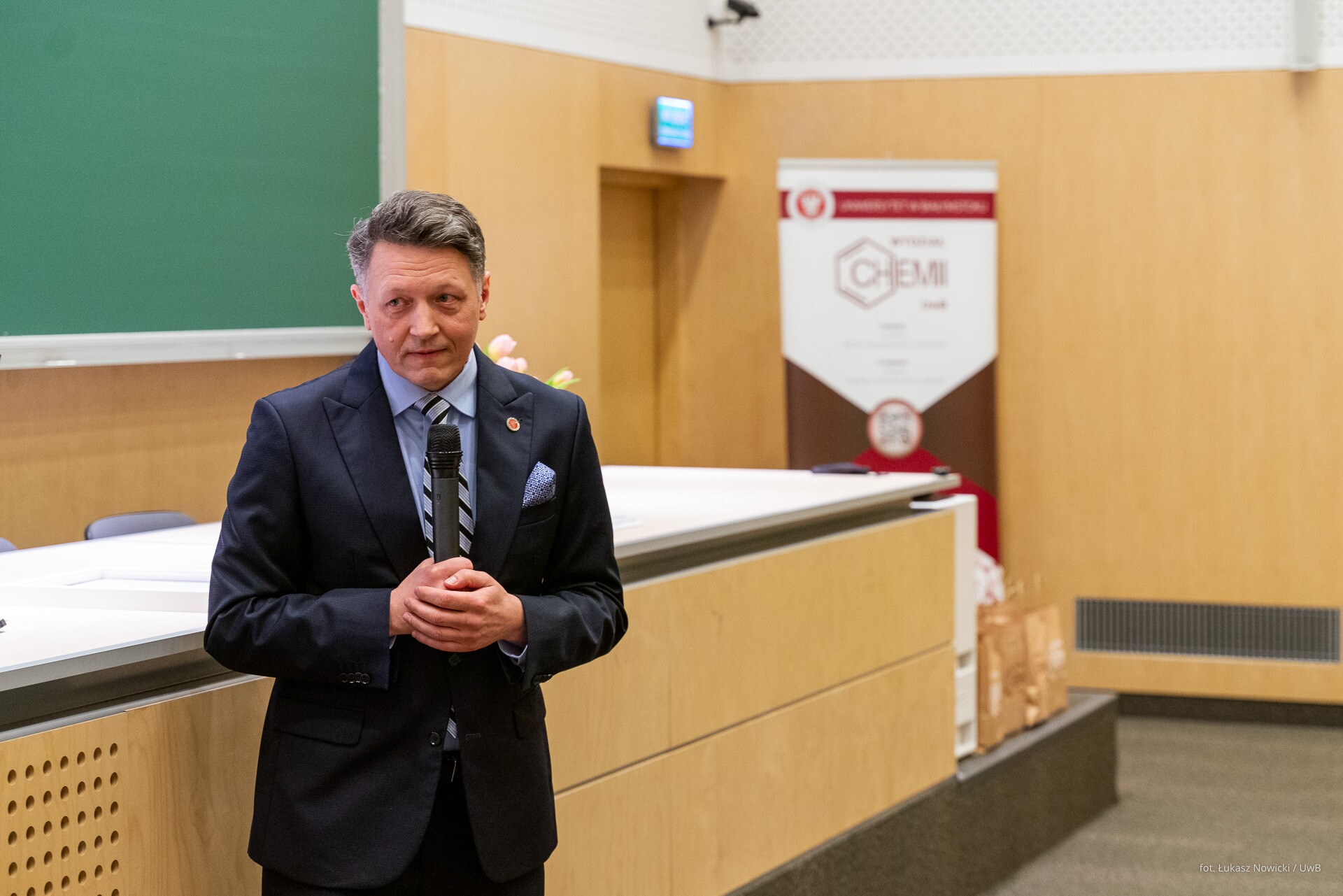 - Rozpoczynamy celebrowanie ogromnego sukcesu nie tylko z perspektywy Wydziału Chemii, ale też całego Uniwersytetu. Otrzymaliśmy certyfikat, na który zasłużyło tylko 16 kierunków w skali kraju. To pokazuje, w jak elitarnym gronie znaleźliśmy się. Dziękuję i gratuluję kolegium dziekańskiemu Wydziału Chemii oraz pracownikom i wszystkim osobom zaangażowanym w utworzenie i prowadzenie tego kierunku. Ten certyfikat potwierdza, że wspaniale potrafimy współpracować z otoczeniem społeczno-gospodarczym. Dobra nauka jest wtedy, jeżeli jest realizowana we współpracy ze znakomitymi specjalistami – mówił podczas uroczystości rektor UwB prof. Mariusz Popławski, dziękując przedstawicielom służb mundurowych i instytucji państwowych za zaangażowanie przy tworzeniu kierunku chemia kryminalistyczna i sądowa.