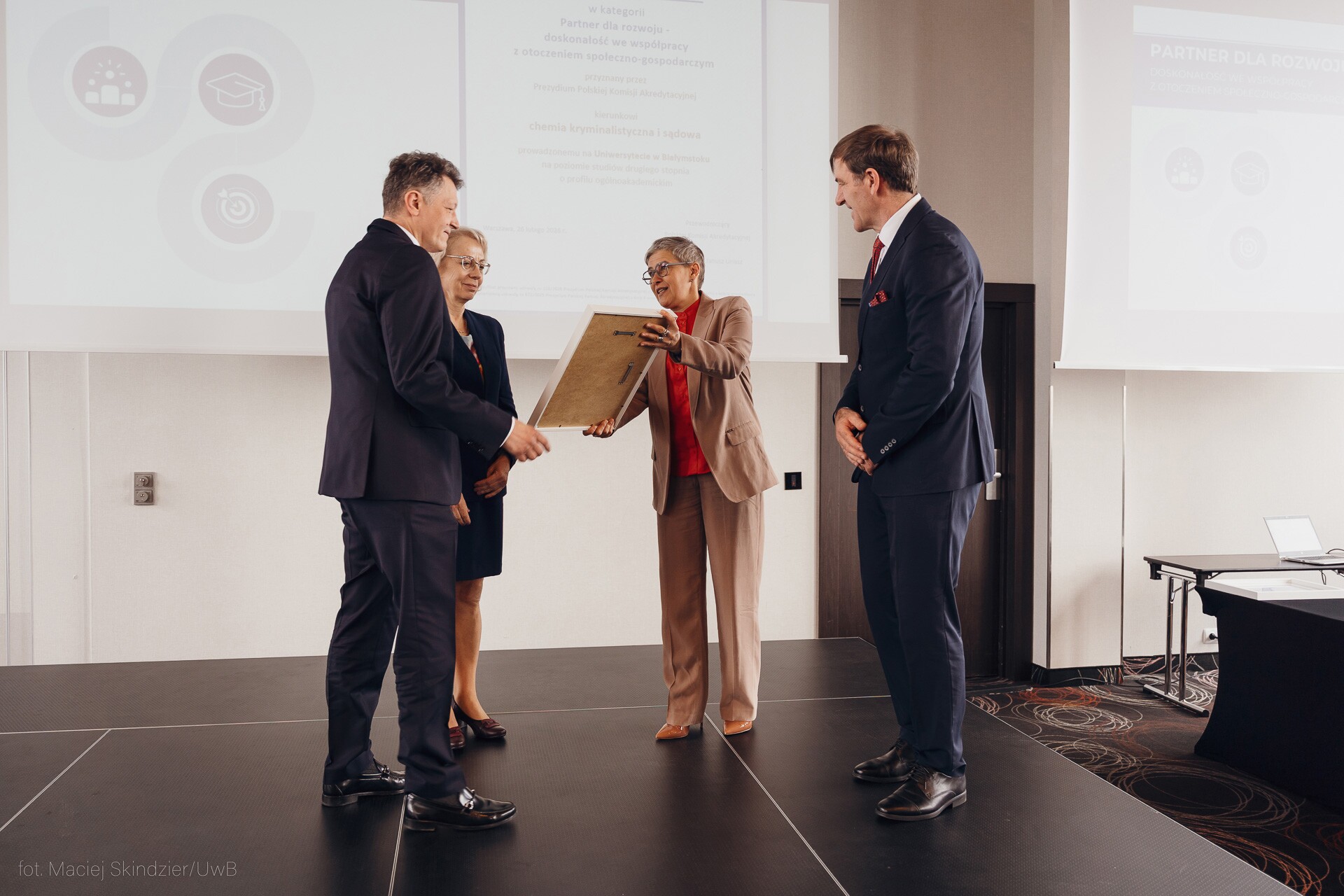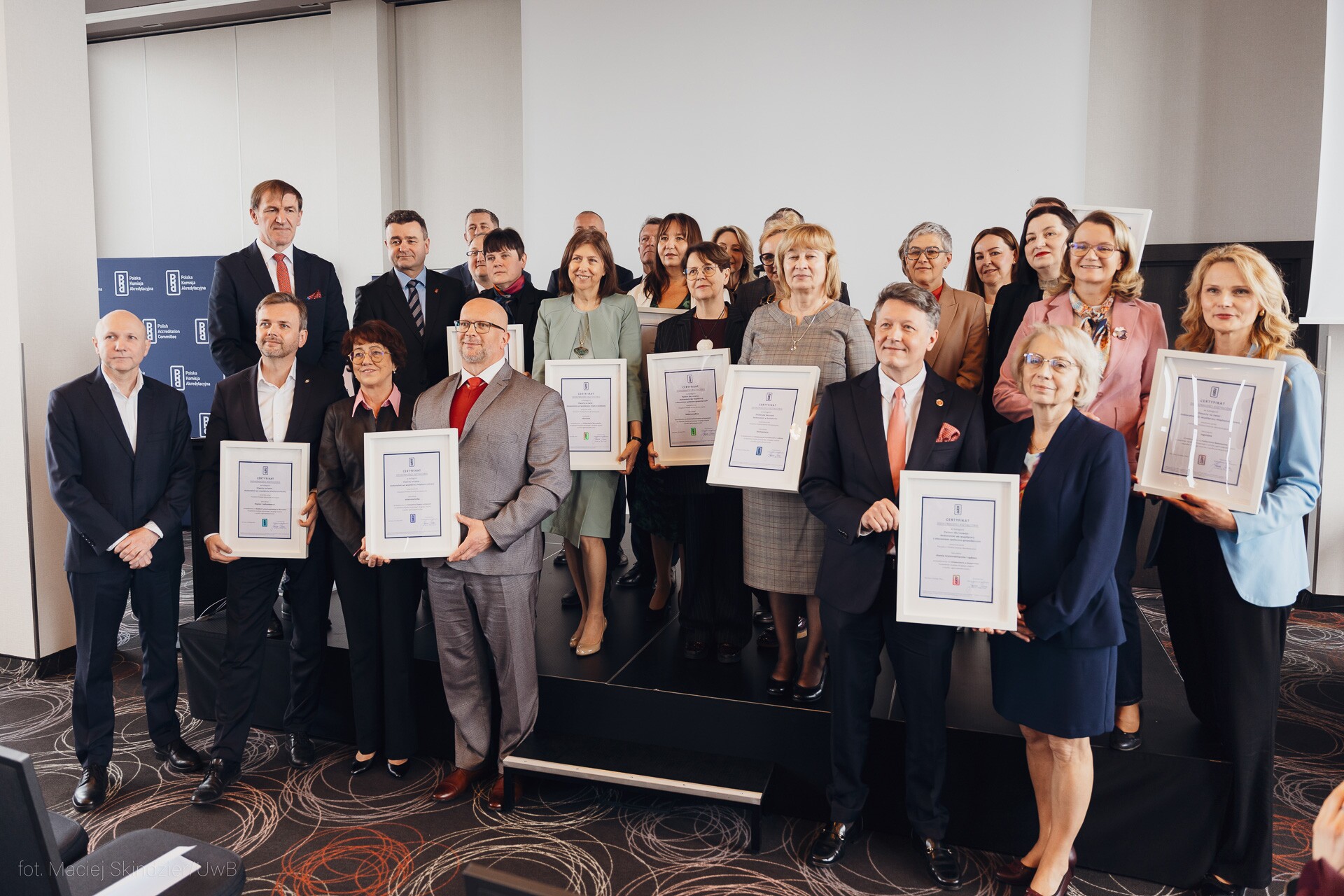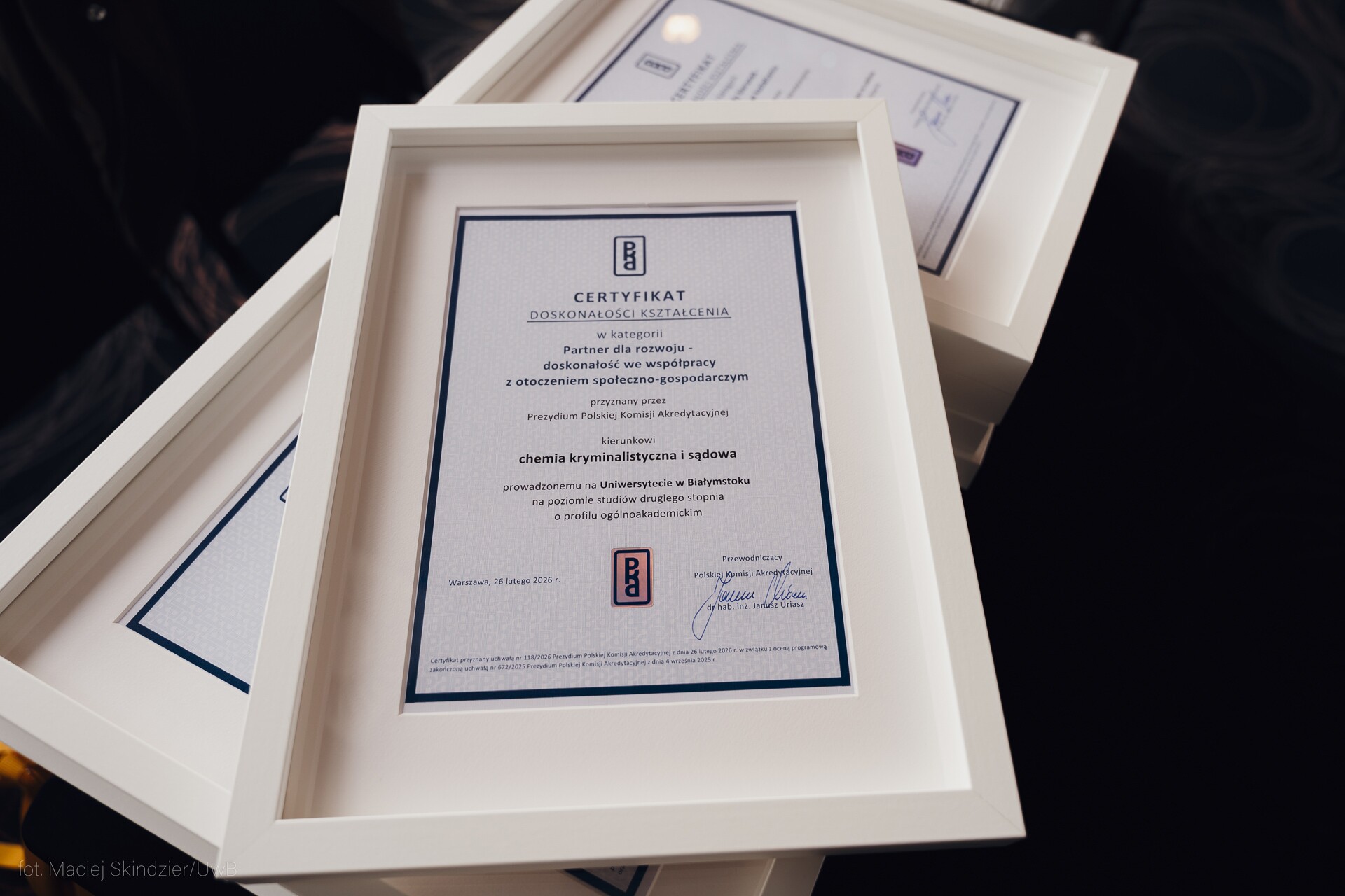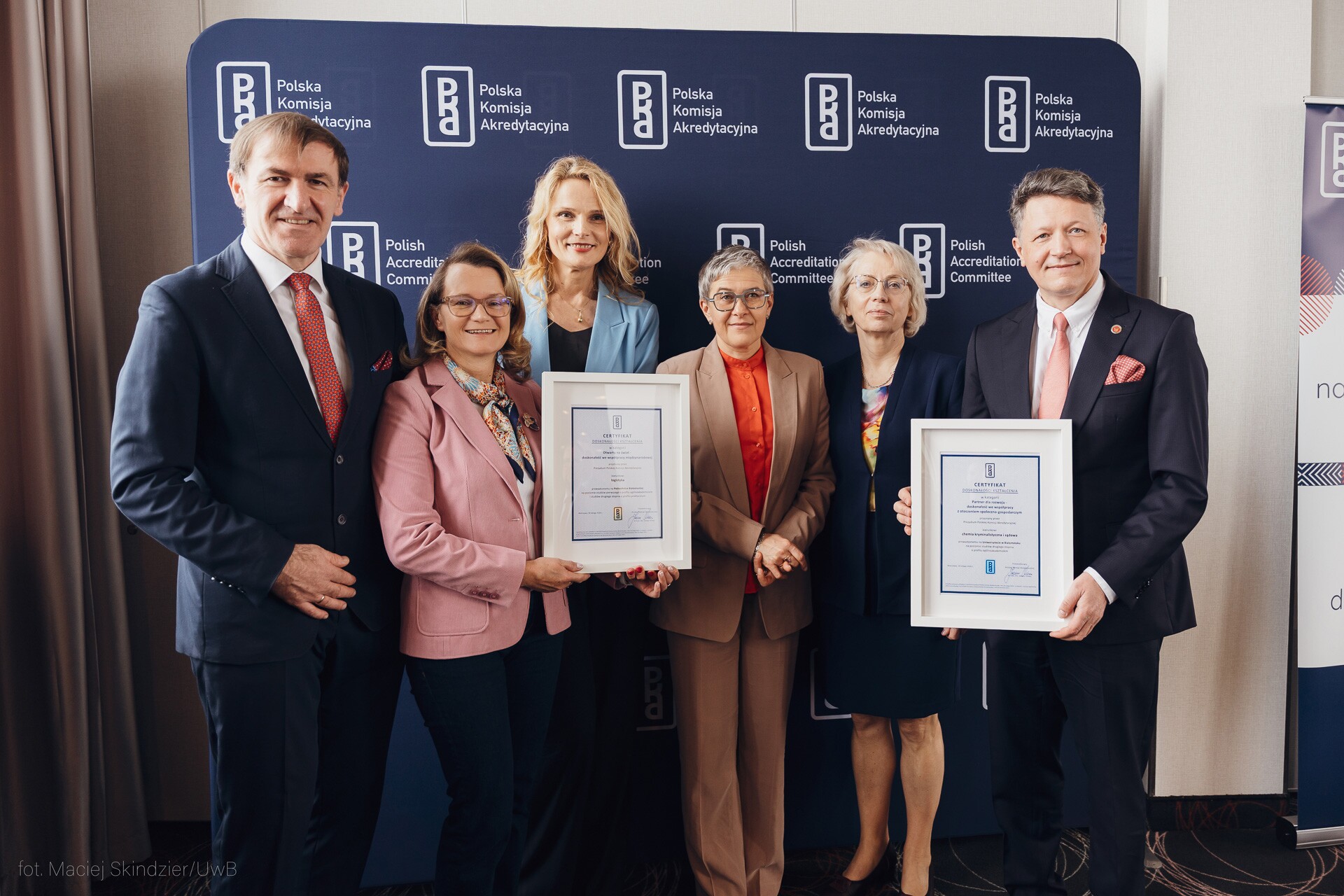 W środę, 25 marca br., przedstawiciele 14 uczelni z całej Polski, które spełniły kryteria wynikające z procedury przyznawania Certyfikatów, spotkali się w Warszawie, by odebrać wyróżnienia z rąk dr. hab. inż. Janusza Uriasza, przewodniczącego Polskiej Komisji Akredytacyjnej oraz prof. Marii Mrówczyńskiej wiceminister nauki i szkolnictwa wyższego. Największą podlaską uczelnię reprezentowali rektor UwB prof. Mariusz Popławski oraz dziekan Wydziału Chemii prof. Joanna Karpińska.