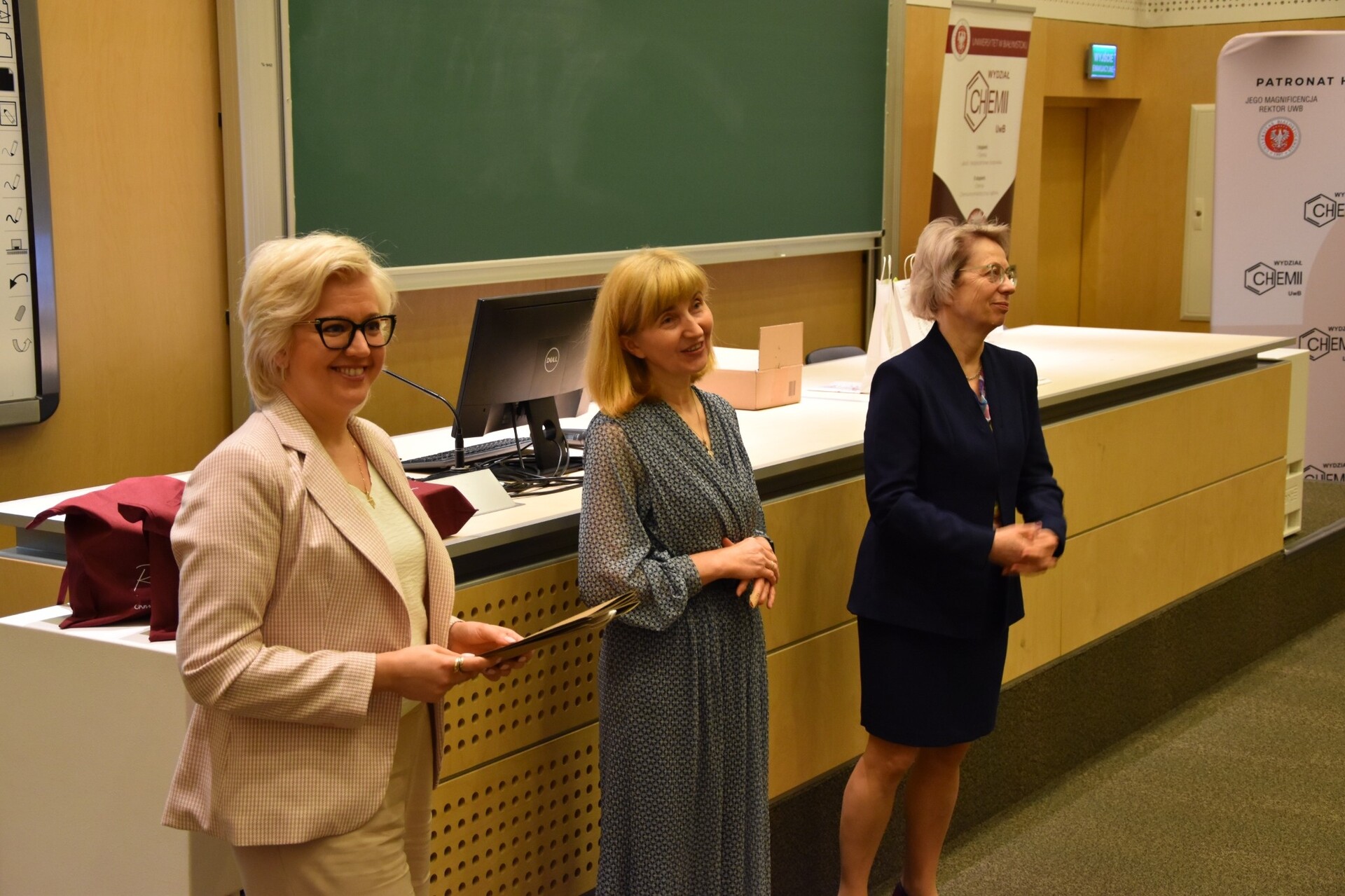 Uroczystość rozpoczęła się wręczeniem nagród laureatom konkursu oraz finalistom Olimpiady Chemicznej. Szczególne wyróżnienie otrzymała również dr hab. Izabela Dobrzyńska, prof. UwB, za zaangażowanie w przygotowanie uczniów do Olimpiady.