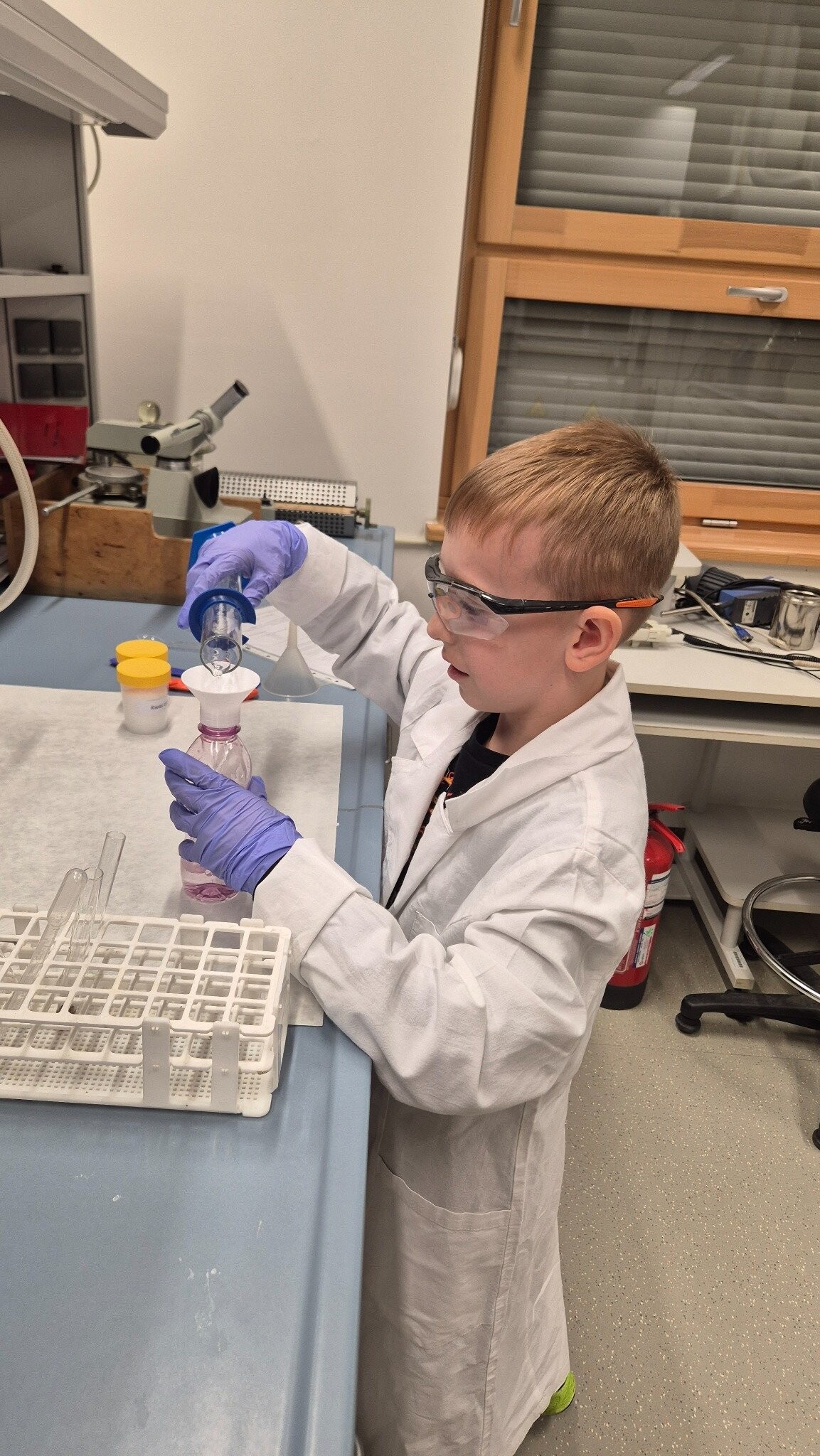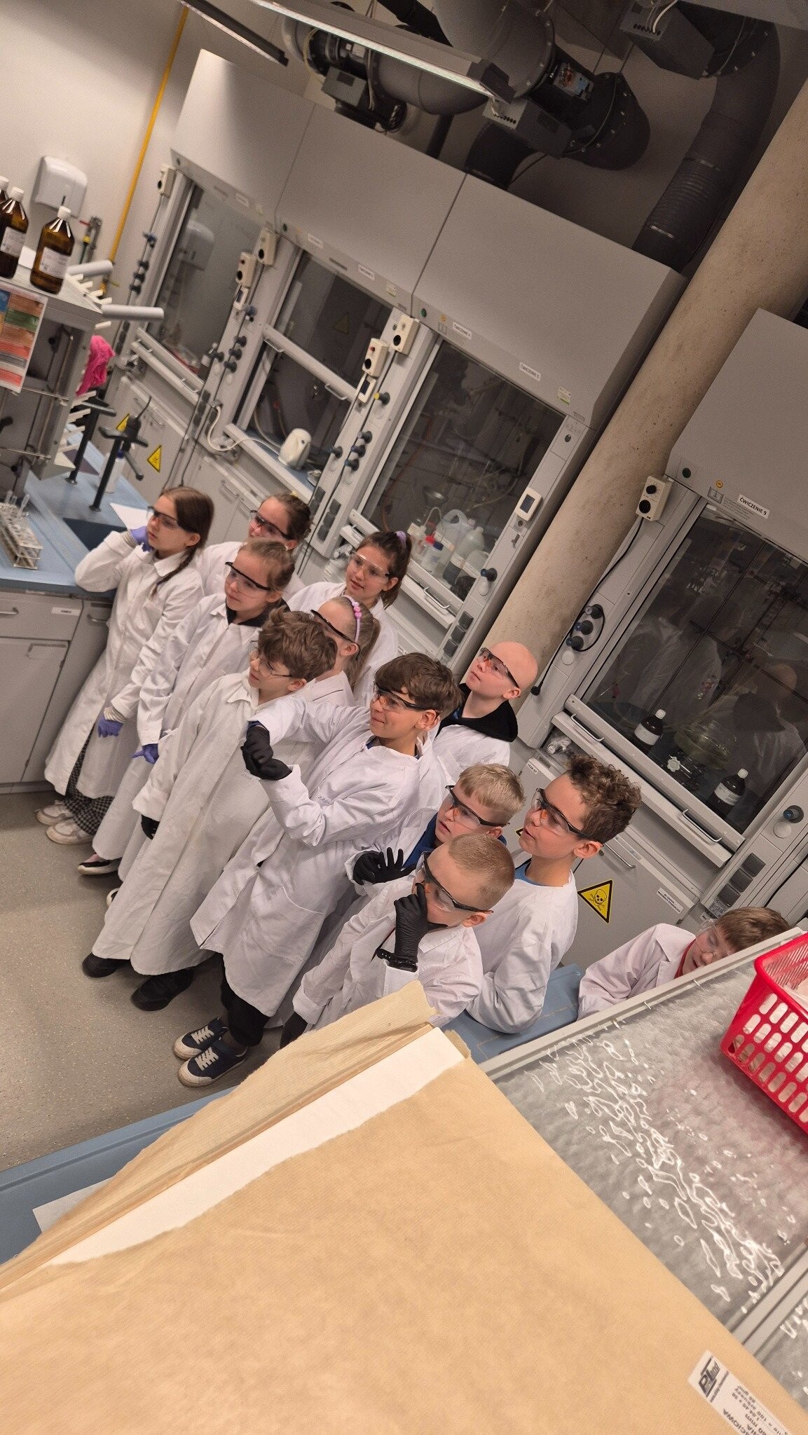 Podczas zajęć dzieci miały wyjątkową okazję samodzielnie przeprowadzić ciekawe doświadczenia chemiczne pod okiem dr Iwony Misztalewskiej-Turkowicz oraz lic. Łucji Liszewskiej. Spotkanie było nie tylko fascynującą przygodą z nauką, ale również cenną lekcją bezpieczeństwa.