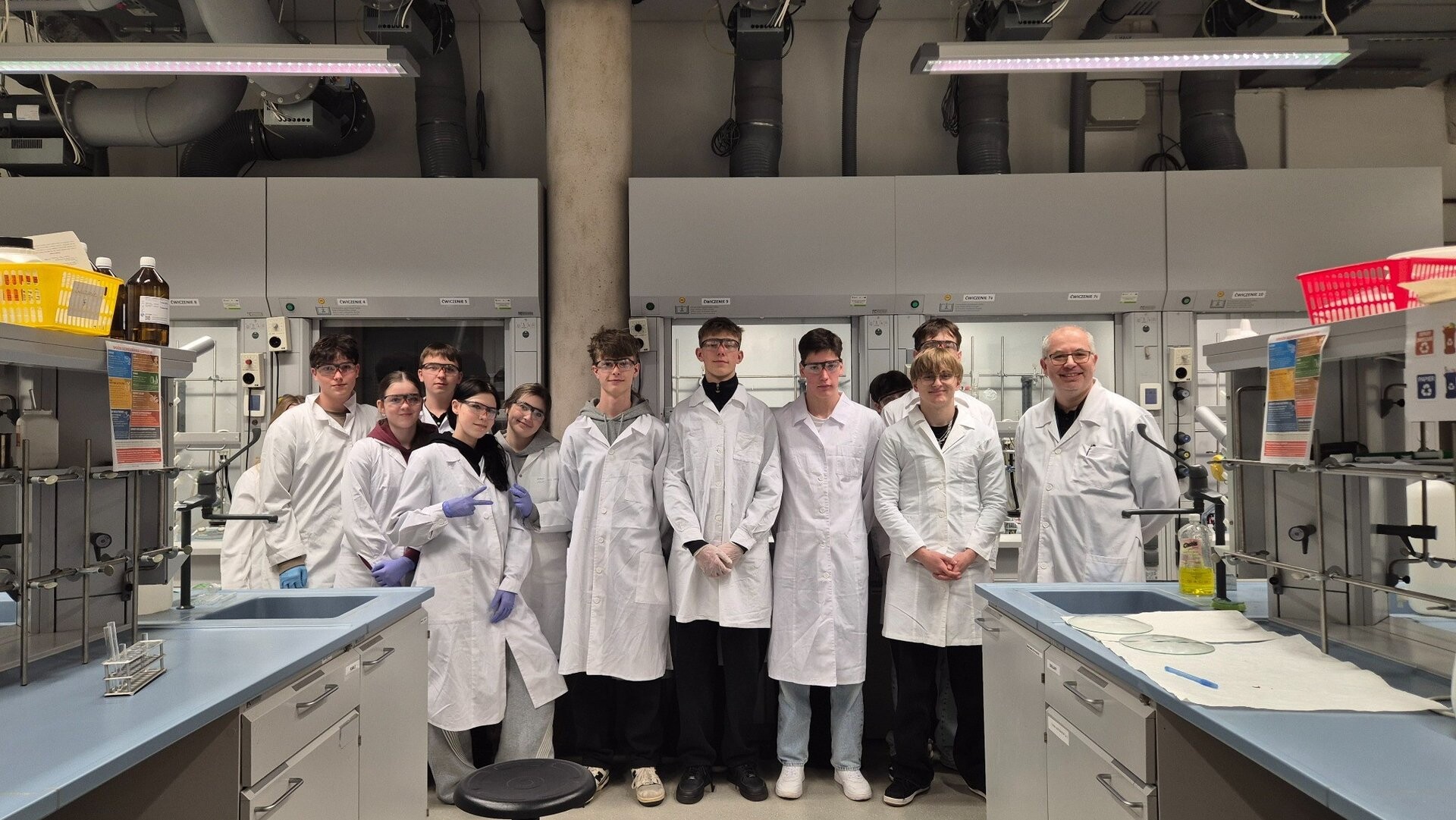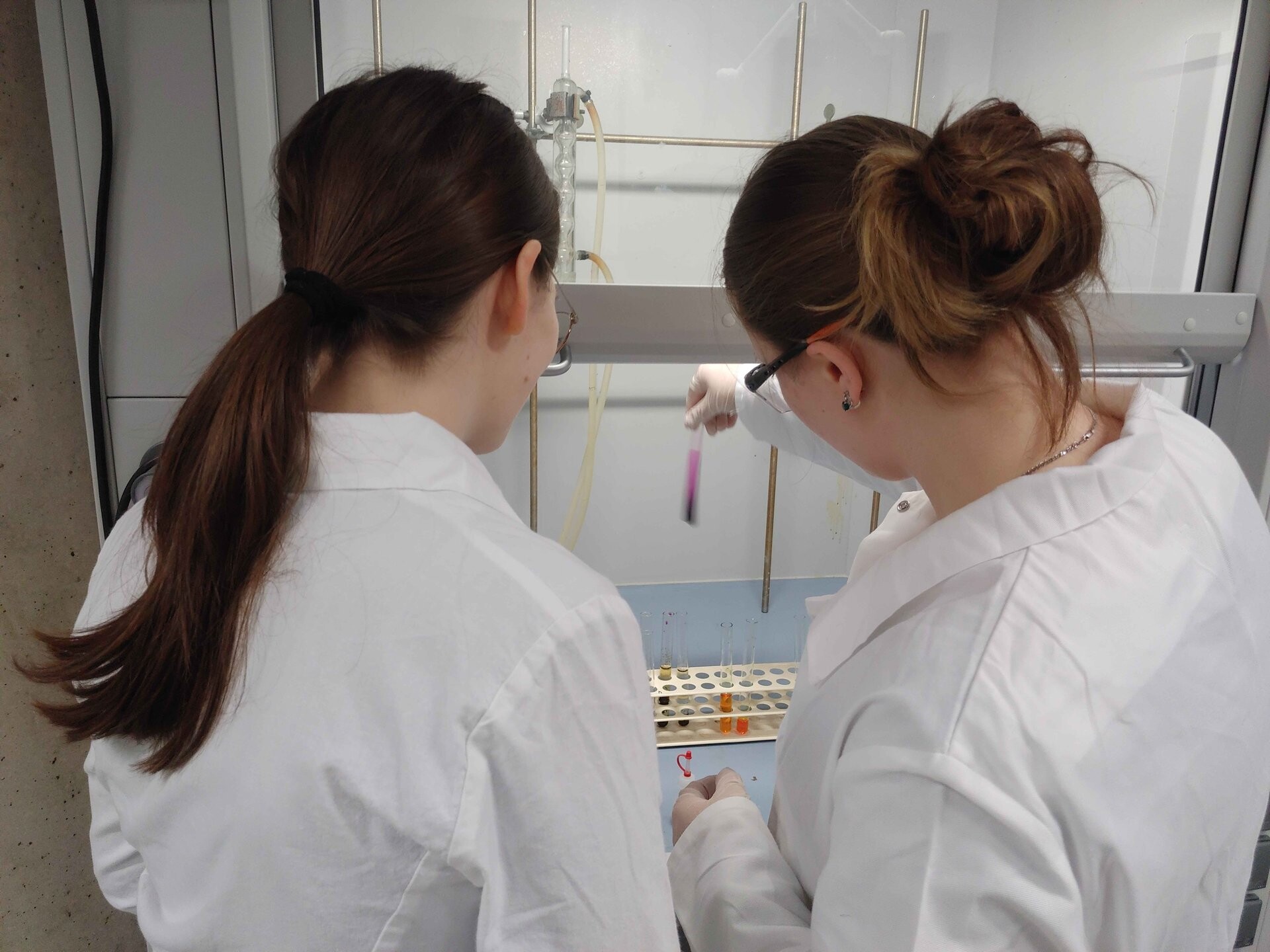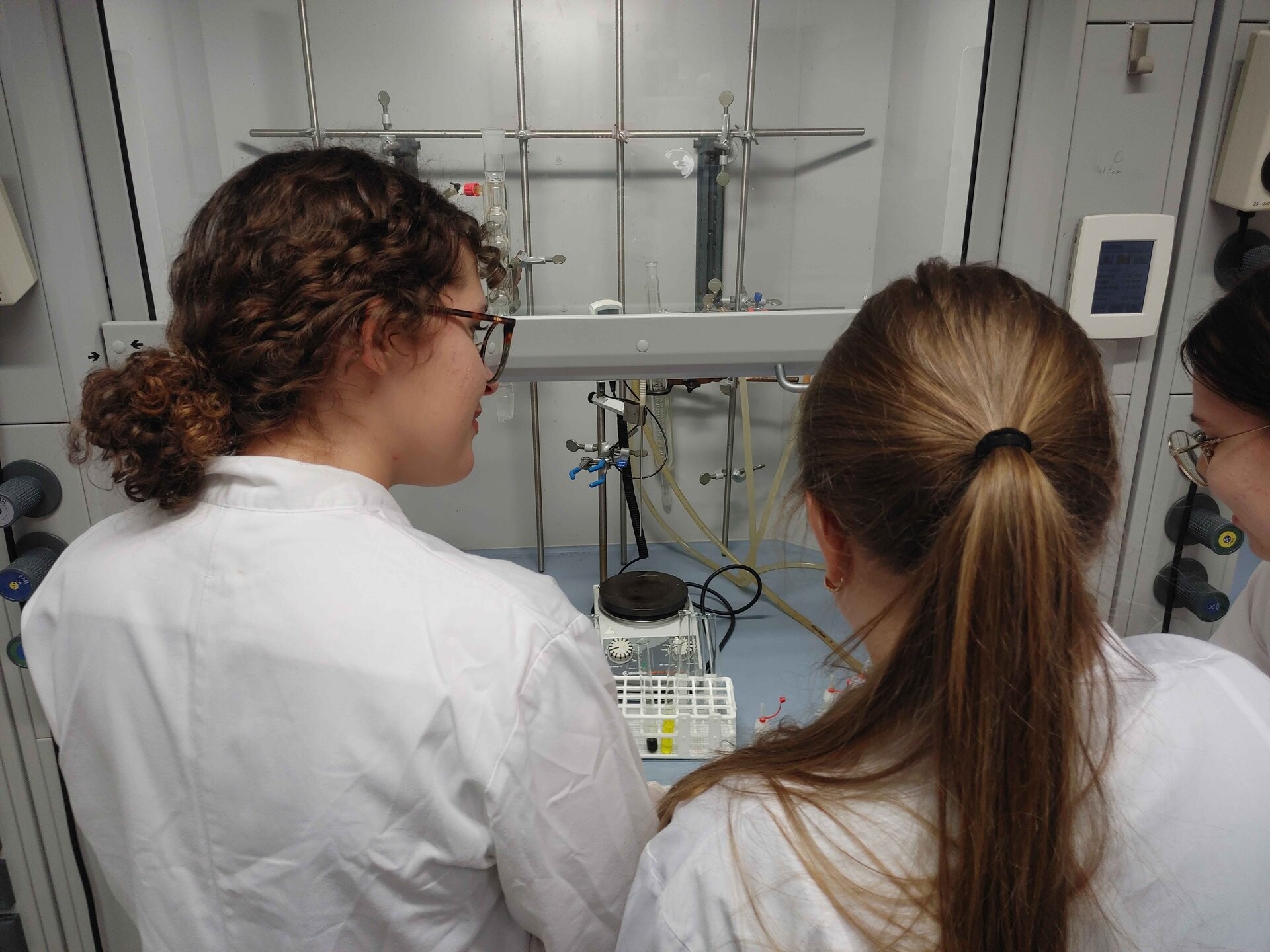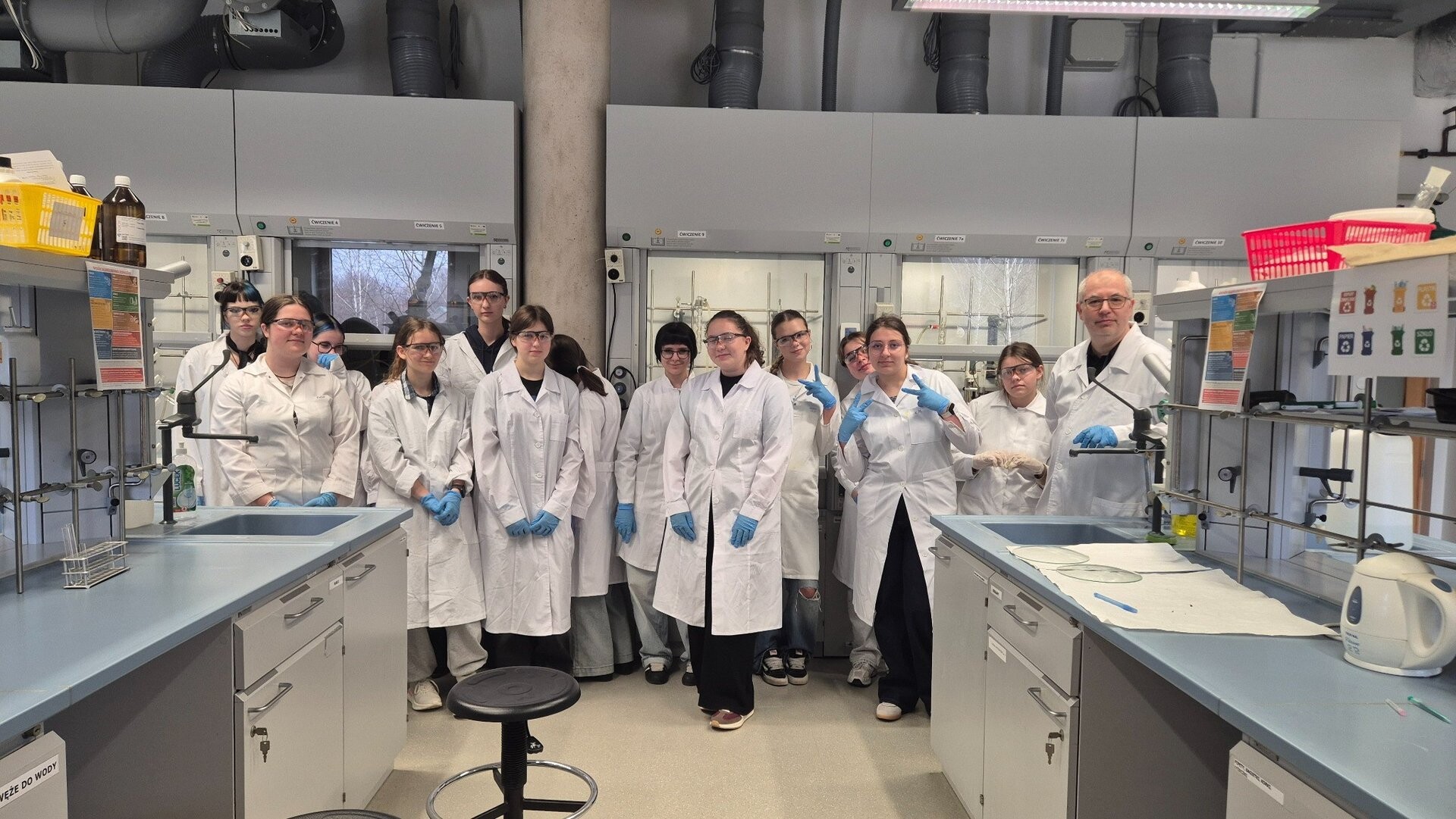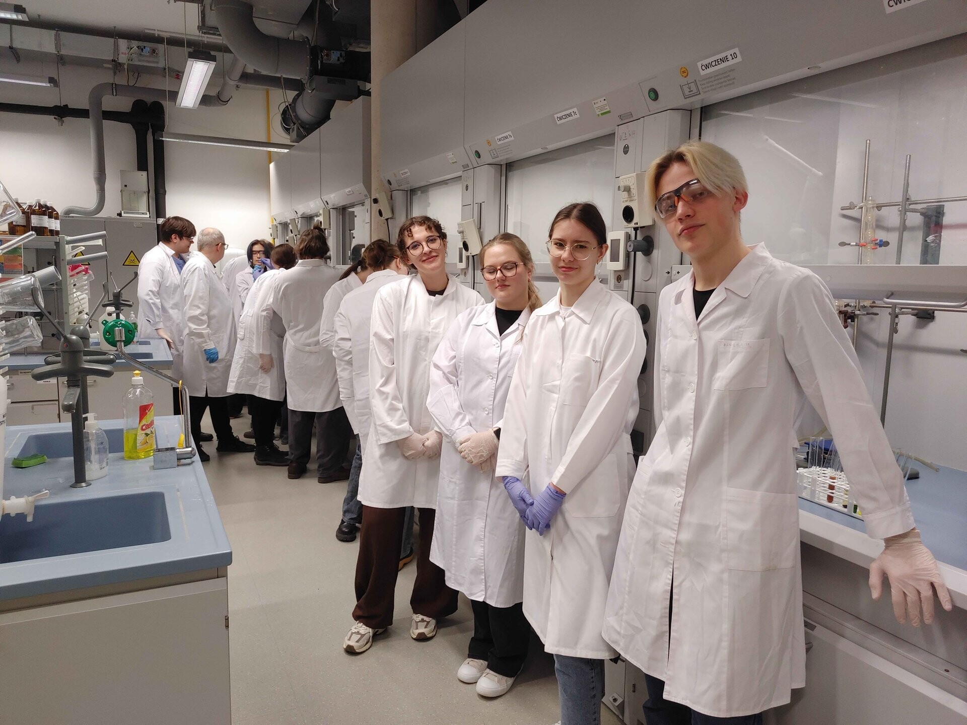 30 marca 2026 roku maturzyści mieli okazję pracować w prawdziwych laboratoriach, gdzie samodzielnie przeprowadzali reakcje charakterystyczne pod kierunkiem dr. Michała Sienkiewicza. Dzięki temu mogli na własne oczy obserwować zmiany zachodzące podczas reakcji chemicznych - od efektownych zmian barw po powstawanie osadów. Natomiast pod kierunkiem mgr Joanny Wysockiej uczestniczyli w wyjątkowych zajęciach, podczas których własnoręcznie wytwarzali papier.
