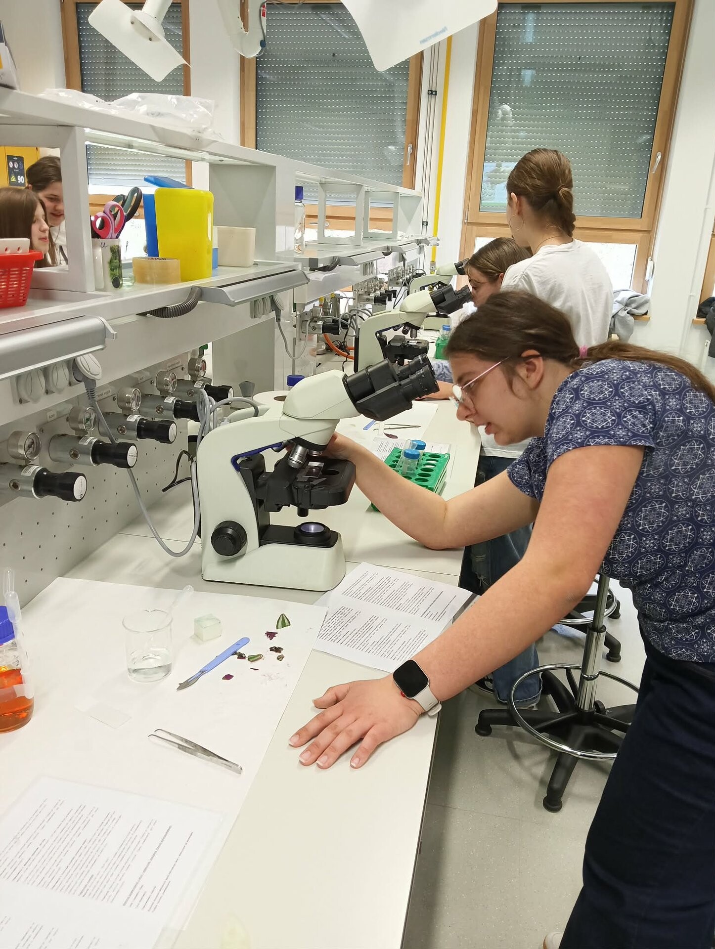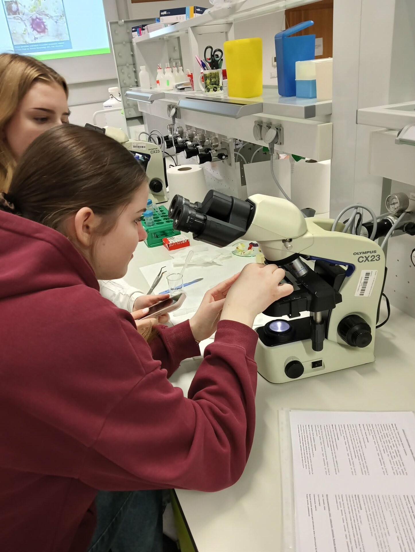 Warsztaty na Wydziale Biologii były doskonałą okazją do przećwiczenia wiedzy zdobytej w szkole w praktyce. Uczestnicy zapoznali się z zasadami wykonywania preparatów nietrwałych i wykorzystania mikroskopu świetlnego do ich obserwacji. Podczas spotkania uczestnicy obserwowali proces plazmolizy w komórkach skórki liścia cebuli, rozmieszczenie aparatów szparkowych w skórce liścia trzykrotki, chromoplasty w miąższu pomidora, ziarna skrobi w miąższu bulwy ziemniaka i końcowe produkty przemiany materii w postaci kryształów szczawianu wapnia w suchych łuskach cebuli.