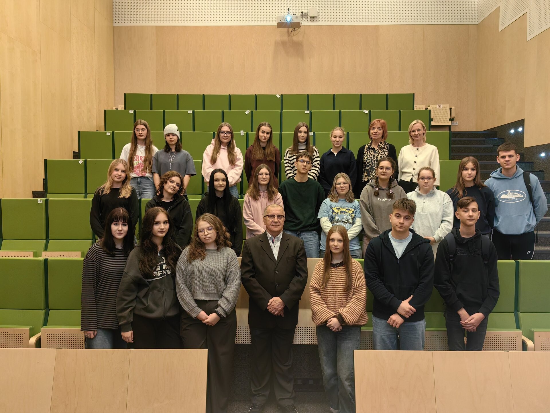 W dniu 26 listopada 2025 r. na Wydziale Chemii UwB, w ramach cyklu Spotkań u Chemików, Pan prof. dr hab. Stanisław Witkowski wygłosił wykład zatytułowany „Czy należy bać się chemii?”, którego z dużym zainteresowaniem wysłuchali uczniowie I Liceum Ogólnokształcącego im. Adama Mickiewicza w Kolnie (około 23 osoby). Podczas wykładu Pana Profesora uczniowie dowiedzieli się, co oznacza zjawisko „chemiofobii” i dlaczego otaczający nas świat staje się „schemizowany”. Na wykładzie przedstawione zostały pozytywne aspekty wynikające z wykorzystania dobrodziejstw chemii, jak również zagrożenia powstające z nadmiernego i nieracjonalnego wykorzystania osiągnięć nauki. Ponadto, dzięki uprzejmości doktorantów z Katedry Chemii Fizycznej i Katedry Chemii Organicznej, uczniowie zostali oprowadzeni po poszczególnych pracowniach laboratoryjnych znajdujących się w Kampusie Uniwersytetu w Białymstoku na Wydziale Chemii UwB.