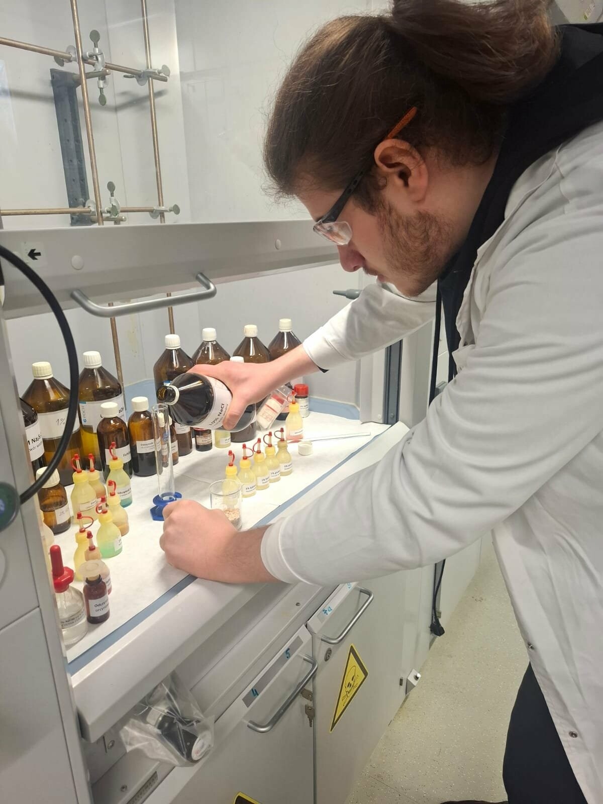 W dniu 25 listopada 2025 r. dr Paweł Misiak przeprowadził zajęcia laboratoryjne z biochemii dla grupy studentów kierunku technik farmaceutyczny z Centrów Zawodów Medycznych i Społecznych - Szkoły Policealnej Województwa Podlaskiego w Białymstoku. Spotkanie odbyło się w ramach projektu współfinansowanego z Funduszy Europejskich dla Podlaskiego pt. "Zawód w CZMISie przyda Ci się".
