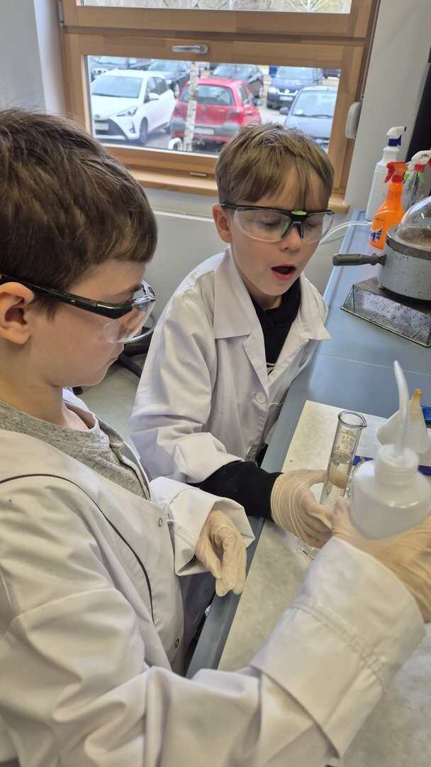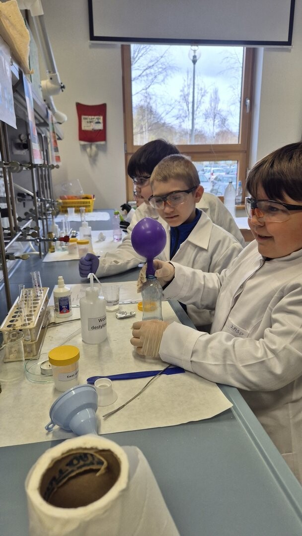 Uczniowie poznawali właściwości wybranych gazów, takich jak para wodna, wodór oraz tlenek węgla(IV), a także samodzielnie uczestniczyli w efektownych doświadczeniach. W programie znalazły się m.in. pompowanie balonika, gaszenie świeczek oraz mini-generatory pary. Zajęcia wzbudziły duże zainteresowanie i były dla dzieci nie tylko świetną zabawą, ale przede wszystkim cenną lekcją nauki w praktyce.